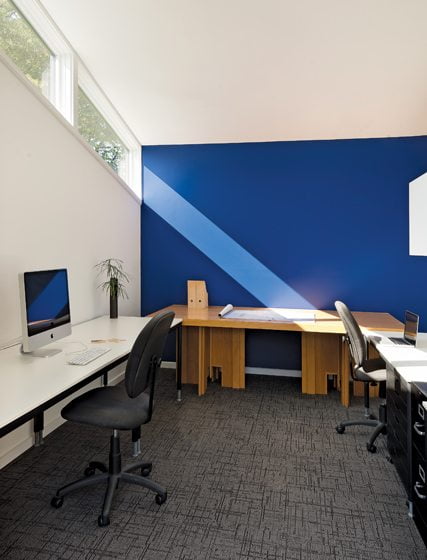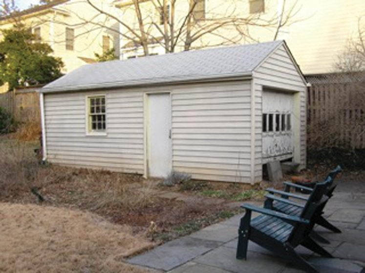 Uekman commutes to his job by walking a few steps to the freestanding studio at the back. “I wanted a sense of separation from the house and this makes a statement that you are going to the office,” says the architect, who previously worked in downtown Bethesda. The rear of the office structure provides a storage space and behind it is a small shed for garden tools.