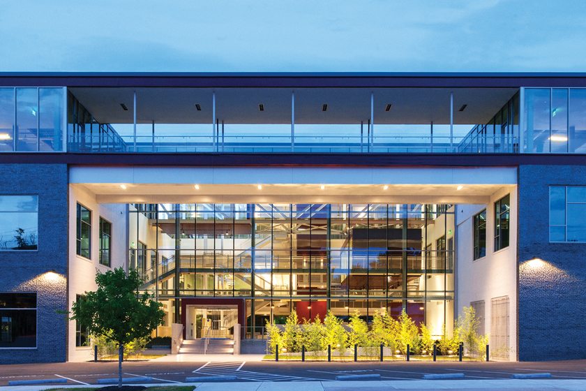 Developers challenged architect Mark McInturff to transform three neighboring 1960s-era Rockville warehouses into a sustainably designed, state-of-the-art office building that will serve as a technology hub. McInturff and his team connected the stripped-down structures via a sleek, glass-enclosed atrium and green space (above) while embracing the edginess of their original materials. “We did what a lot of office buildings don’t,” the architect says. “We didn’t cover up the exposed concrete and steel, and we used a lot of glass and as little drywall as we could.” Now complete, the 103,482-square-foot Greencourt Innovation Center boasts offices and conference rooms, wifi-enabled courtyards, a green roof and optimized energy systems; LEED-Silver certification is pending.