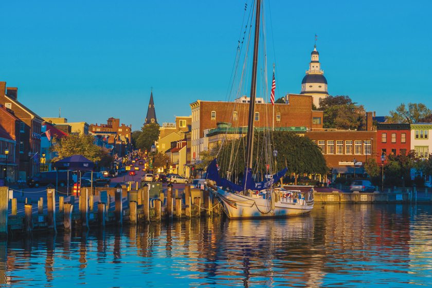 With a cornucopia of American architectural styles, Annapolis is commonly called a “museum without walls.” Color-coded, octagonal markers help visitors find 240 well-preserved, historic structures across the city. For example, red means Georgian (1715-1800) while yellow highlights distinctive early 20th-century styles, from Beaux Arts to Craftsman.