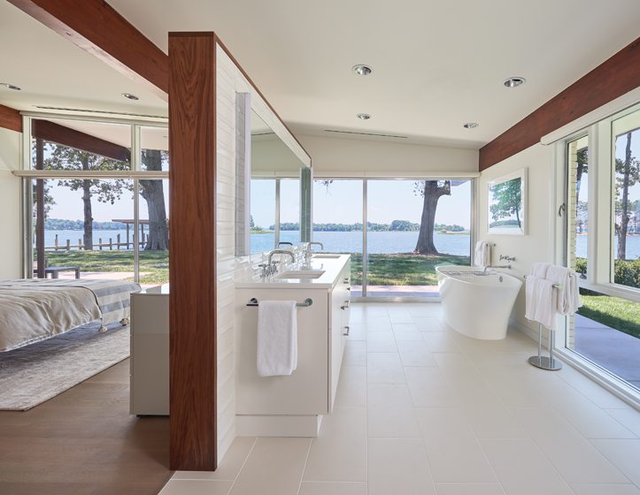 Wiedemann and project architect Barbara Sweeney collaborated with construction manager Steve Cahall on the project, which entailed restoring the home’s best mid-century features while updating and improving the interiors with a plan that would capitalize on openness, light and spectacular water views.