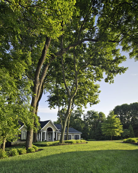 Still, the house itself was less than idyllic. Built in 1986, the interiors were dated and the site had drainage issues. The couple collaborated with architect Rick Longo and landscape architect D. Miles Barnard on an overhaul that would update both home and landscape.