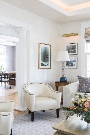 She and her husband, a lawyer, tapped designer Joe Ireland to redesign the interiors, requesting a fresh aesthetic that would maintain the spirit of their five-bedroom, circa-1908 home. “We went for classic style, but updated with a younger feel,” Ireland says.