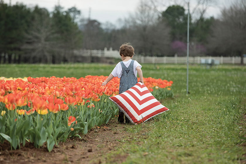 “Outside is the new inside,” declares realtor.com, alluding to what the site terms 2018’s major outdoor-living trend. Items that bring luxury décor outdoors are particularly popular—including the vast array of chic, water- and mildew-resistant outdoor fabrics on today’s market. Bold stripes, playful patterns and saturated hues are as much at home in the living room as they are on the patio. Pictured above: Halo in Mustard and Cajun from Wendy Jane by Gabby—part of a new collection of more than 600 indoor/outdoor performance pillows, available in all shapes and sizes. gabbyhome.com