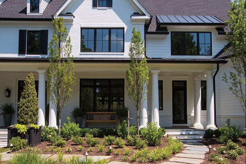 The owners of a lot in Great Falls, Virginia, hired James McDonald Associate Architects to design a custom home that would fuse a rustic, farmhouse aesthetic with clean-lined, modern touches. He envisioned an exterior with a large, wrap-around porch and open living spaces within.