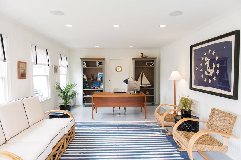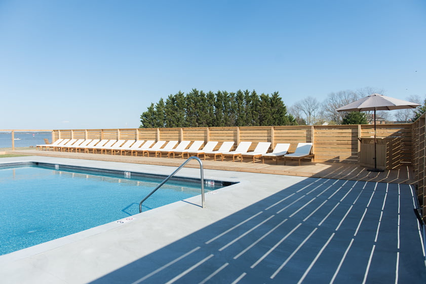 Reimagined once again—this time under the Wylder Hotels brand—the property reopened after a renovation in April 2018 as Wylder Hotel Tilghman Island, a resort nestled on nine lush, waterfront acres. While the original exterior remains intact, the interiors, by Brooklyn-based hospitality design firm Studio Tack, channel “a white-washed, classic seaside resort feel that honors the architecture,” says Wylder founder and CEO John Flannigan. Guest rooms boast navy wainscoting, brass fixtures and sisal carpet, while public spaces are airy, with striped-cotton rugs and rattan furniture.