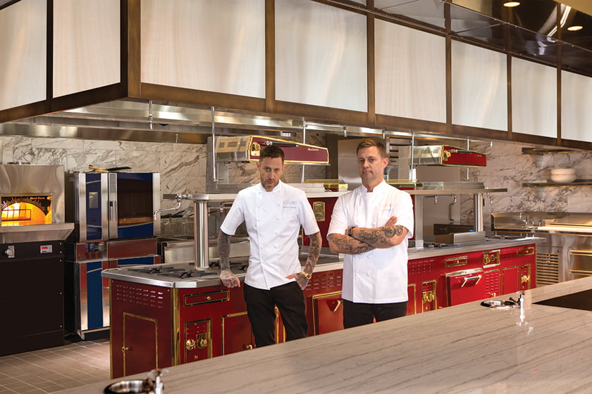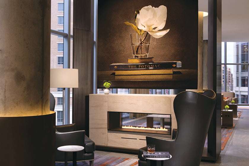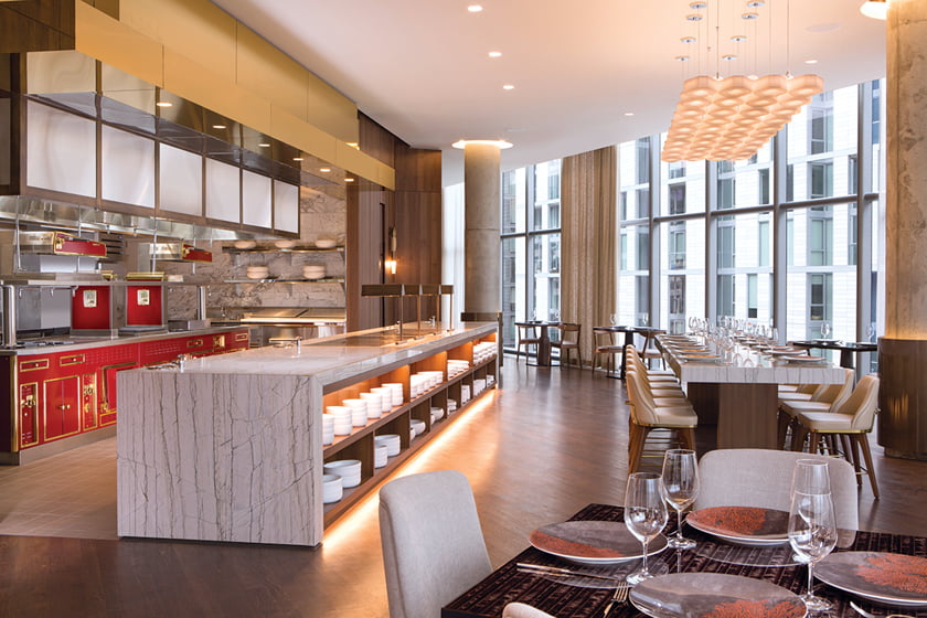 “Top Chef” alumni Michael and Bryan Voltaggio celebrate their Maryland roots at Estuary in the Conrad Washington DC hotel. The menu, which presents Chesapeake fare in a new light, includes a riff on the Maryland Crab Roll. Interiors by Lauren Rottet, FAIA, of Rottet Studio are a modern take on the American tavern. Diners can watch the chefs work around a custom Molteni stove and White Macauba plating station; warm wood-and-stone finishes and a fireplace grace the bar. 950 New York Avenue, NW; 202-844-5895. estuarydc.com