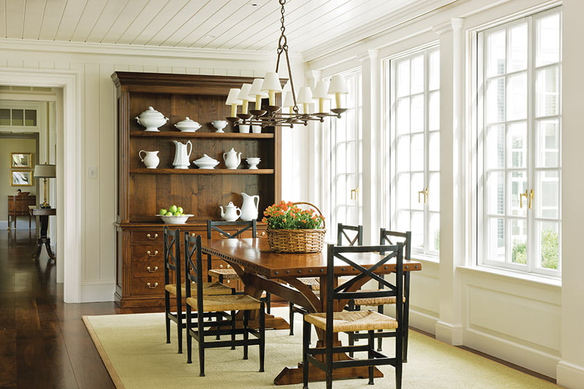 The project, a John Russell Pope Award-winner, showcases custom millwork, and shiplap details.