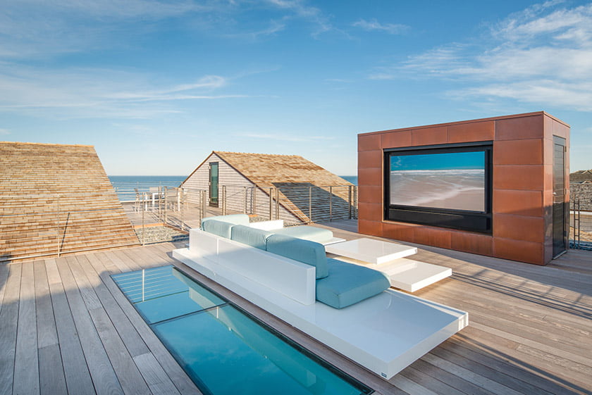 A roof deck on the Rehoboth residence features a built-in TV and plunge pool. Photo: John Cole
