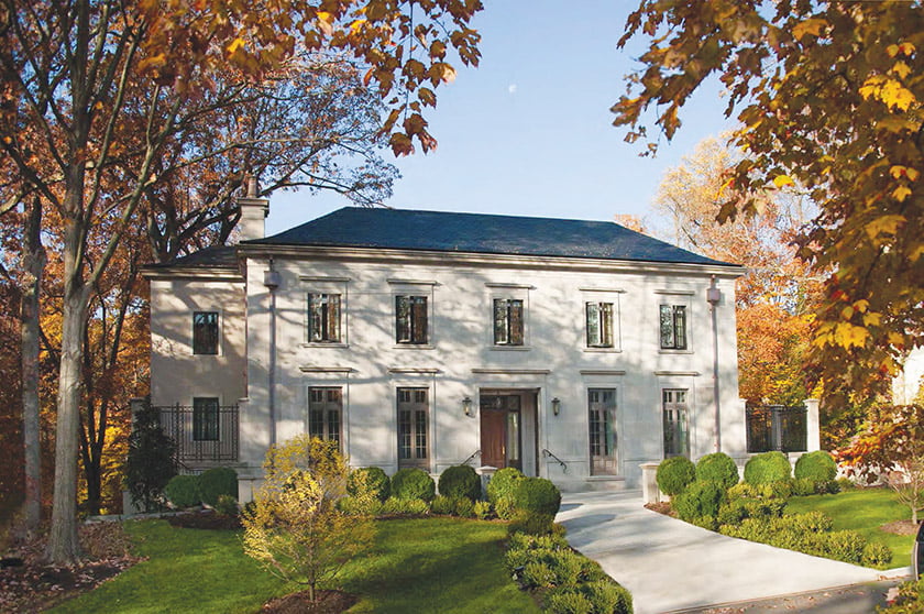 Classic details include a limestone façade and slate roofing. Photo: John Cole