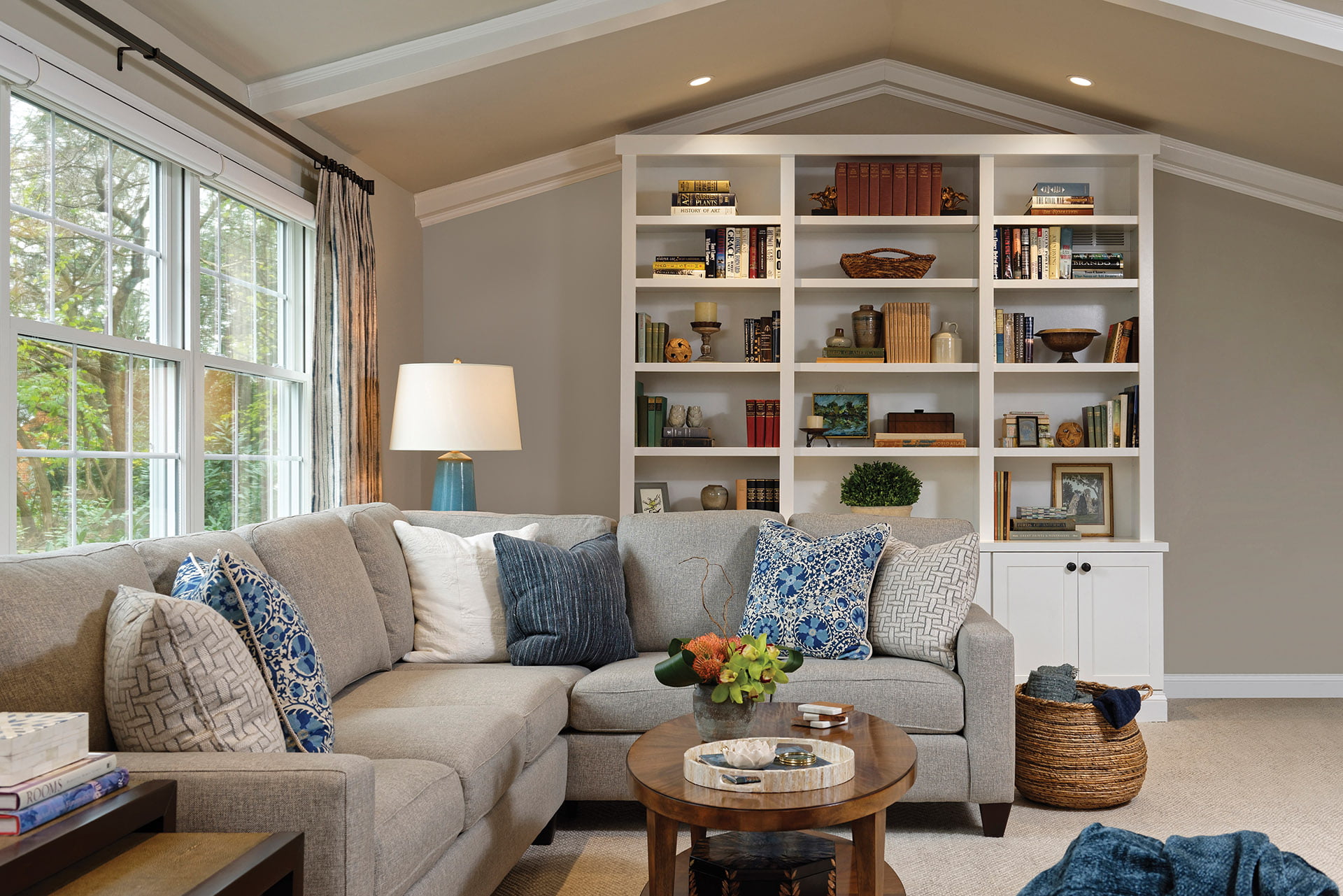 In an inviting family room, a cozy sectional beckons.