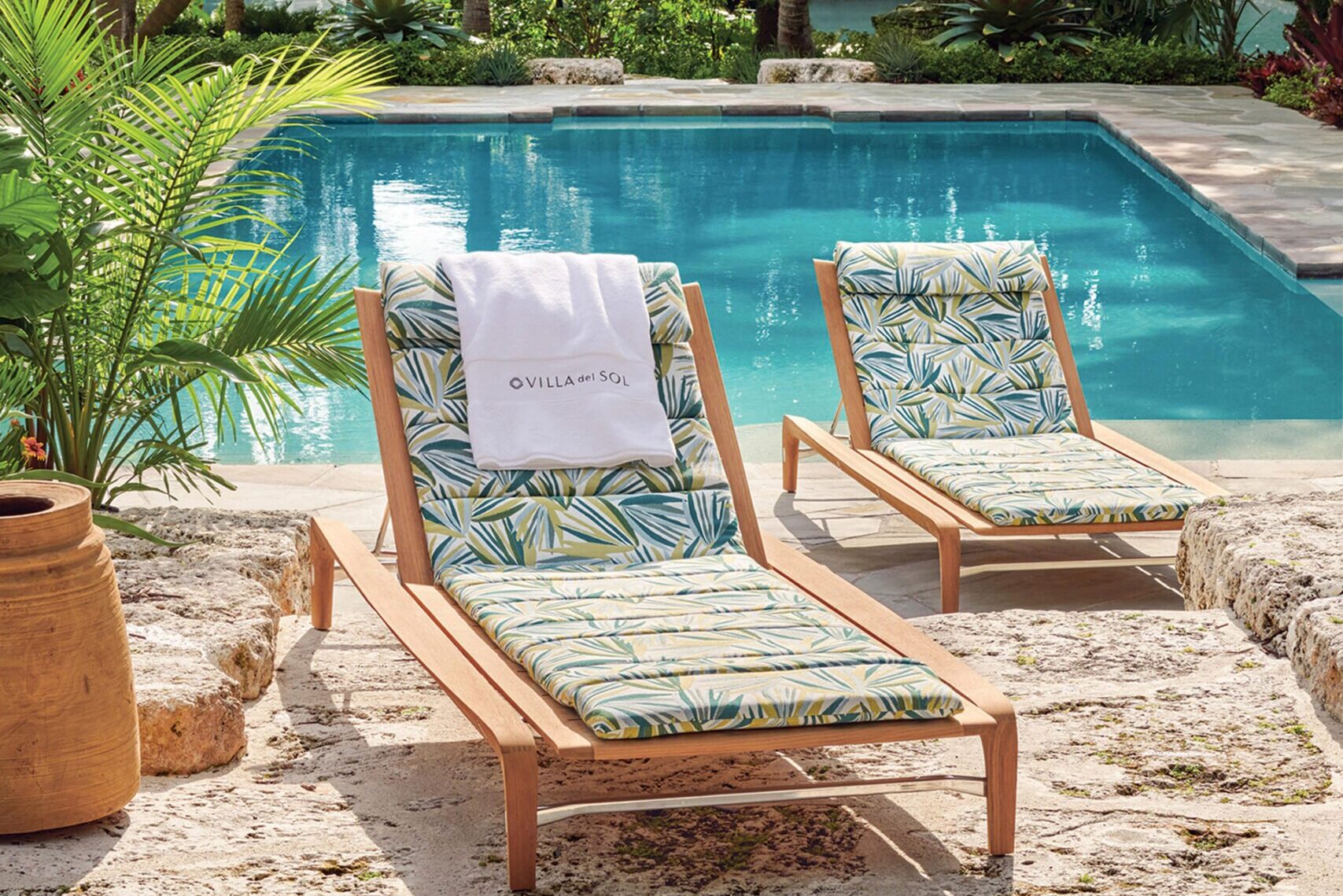 Perennials’ new Villa del Sol outdoor fabric collection brings a resort vibe home with exotic prints and festive hues. Palmetto in Verdigris (pictured) evokes swaying palms on a pristine tropical beach. Five new rug patterns round out the line, offered at David Sutherland in DC. perennialsfabrics.com