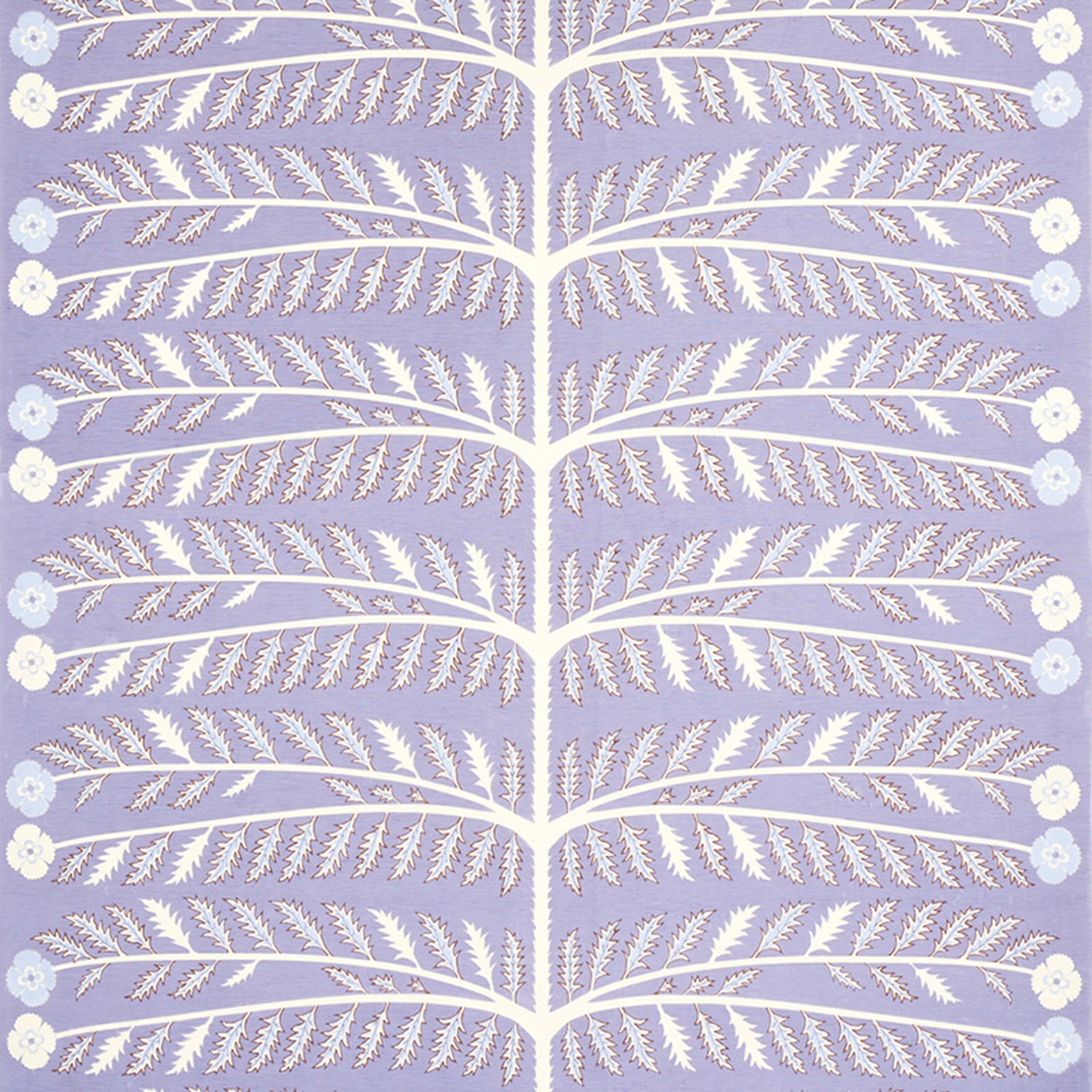 2/ FINE FABRIC Two Schumacher textiles embrace the periwinkle trend. Left to right: San Cristobal Toile reproduces an 18th-century botanical illustration, while fanciful Thistle, by Neisha Crosland, is printed on a handmade silk-linen blend.fschumacher.com