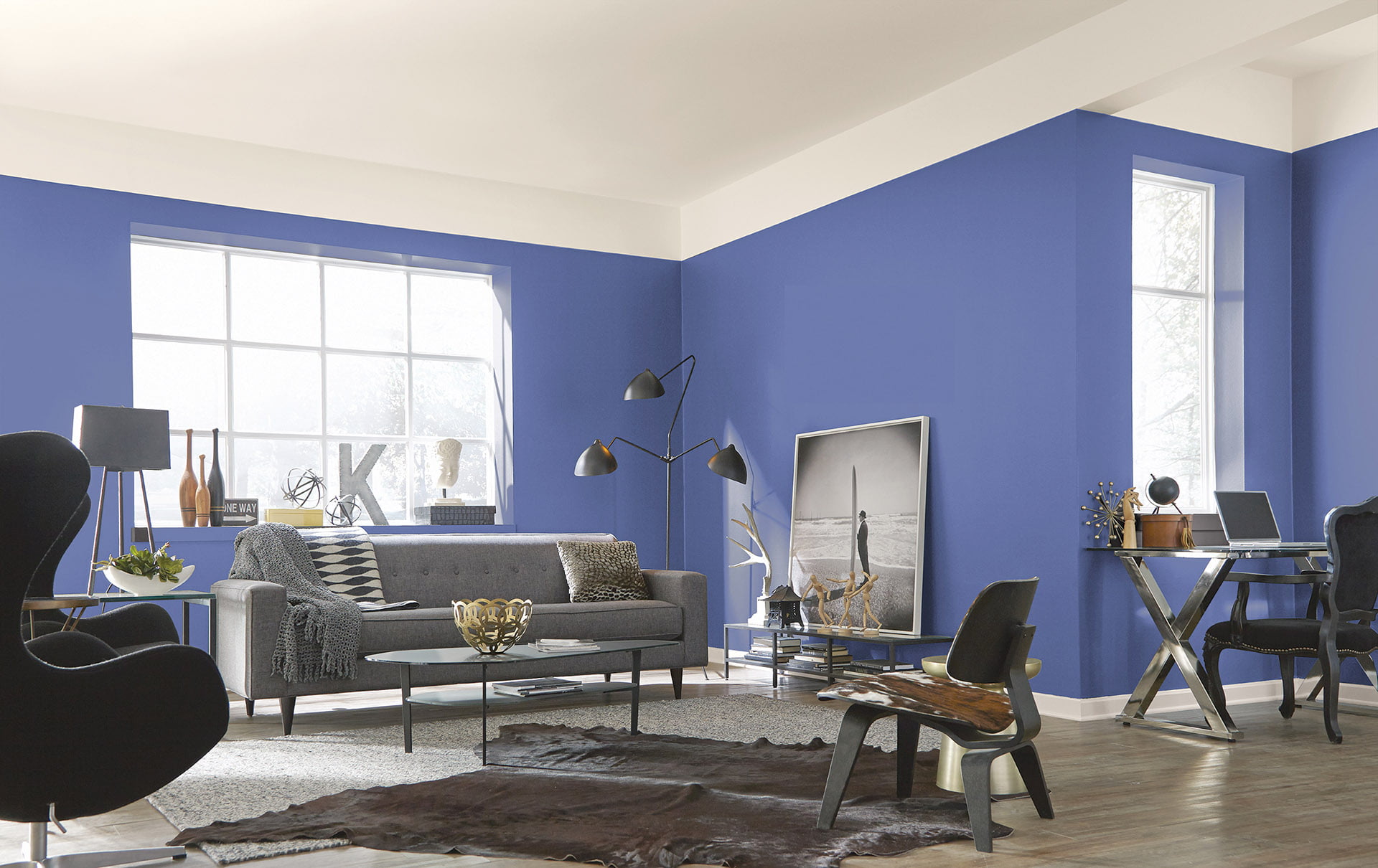 1/ PERFECT PAINT Sherwin-Williams’ Gentian, a whimsical shade of purple, enlivens a living room setting. sherwin-williams.com