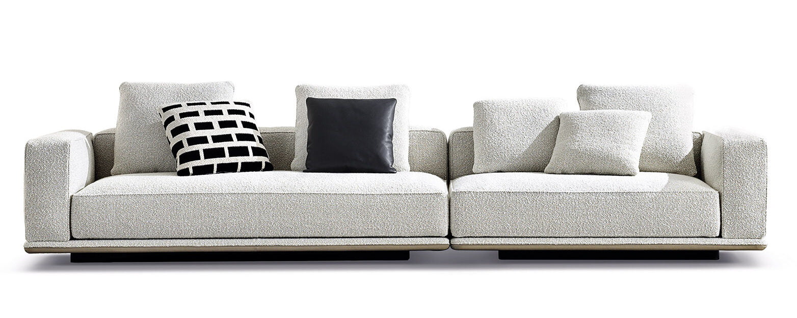 FLUID FORM The Horizonte modular seating system devised by Marcio Kogan for Minotti comprises a fabric- or leather-covered base set atop a recessed plinth for a suspended effect. Padded elements—seats, backrests and armrests—can be reconfigured or removed to create a low-slung side table. minotti.com |
