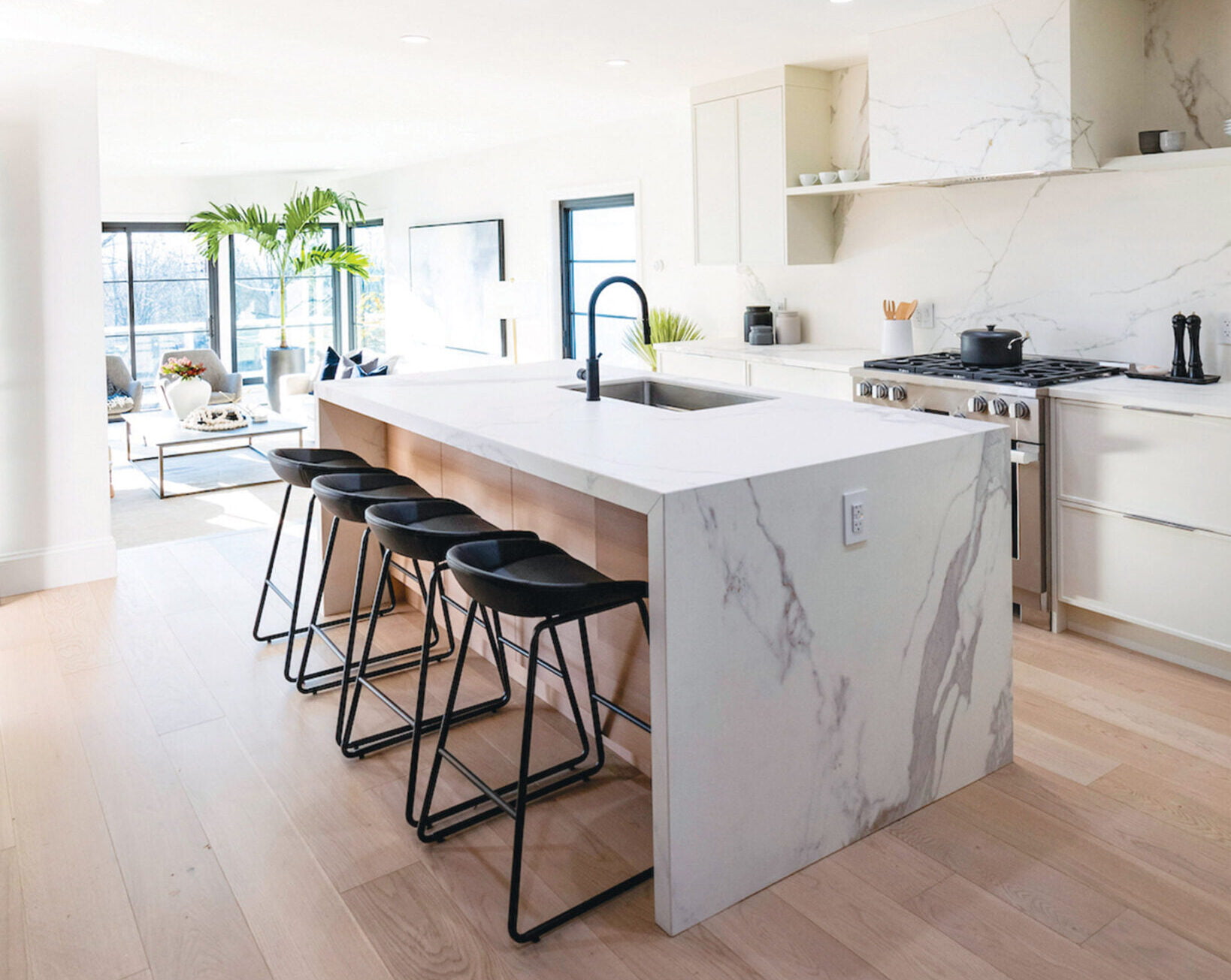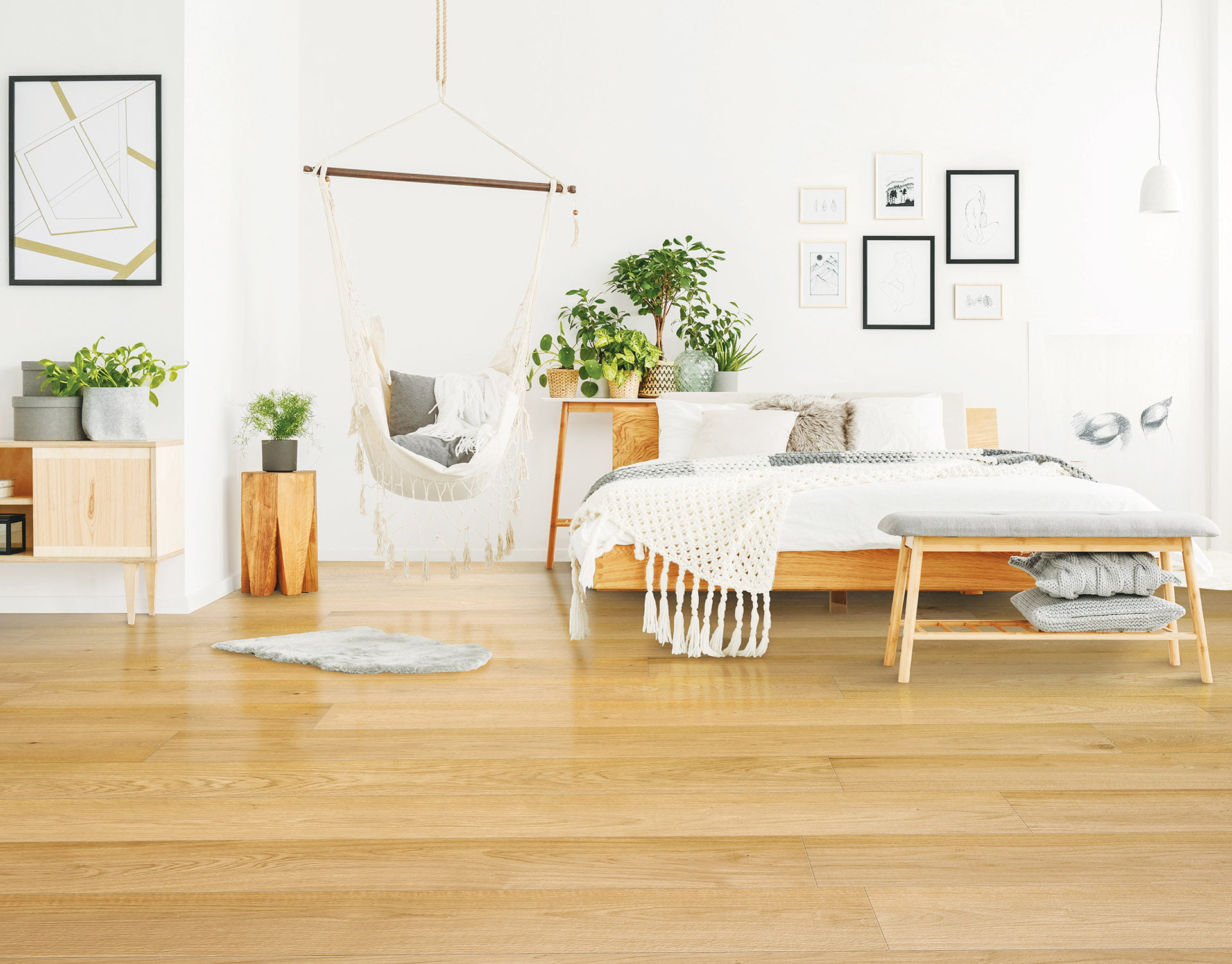 SMOOTH MOVE DuChateau’s Vernal engineered-hardwood collection presents smooth, clean surfaces with minimal knots and cracks. Made of European oak, the line includes seven finishes, from American Walnut to Bois Fumé and White Patina (pictured). duchateau.com |