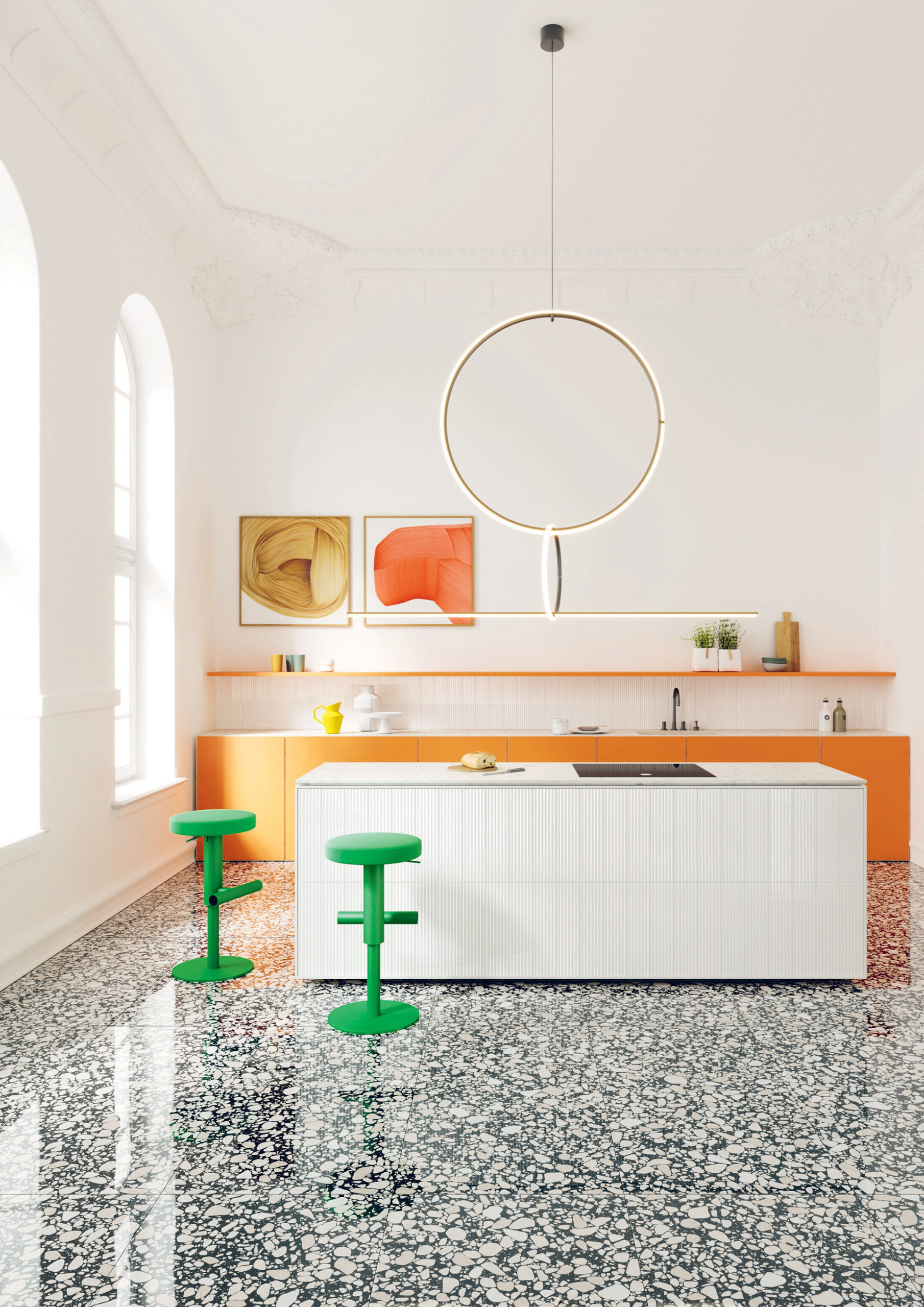 HAPPY FEET The Tender ceramic-tile collection by Spanish maker Cevica lights up any room. These ceramic tiles—either as solid shades or in playful graphic patterns—run the spectrum from colorful turquoise, ochre and sky blue to edgy black and white, offering endless design combinations. cevica.es/en |