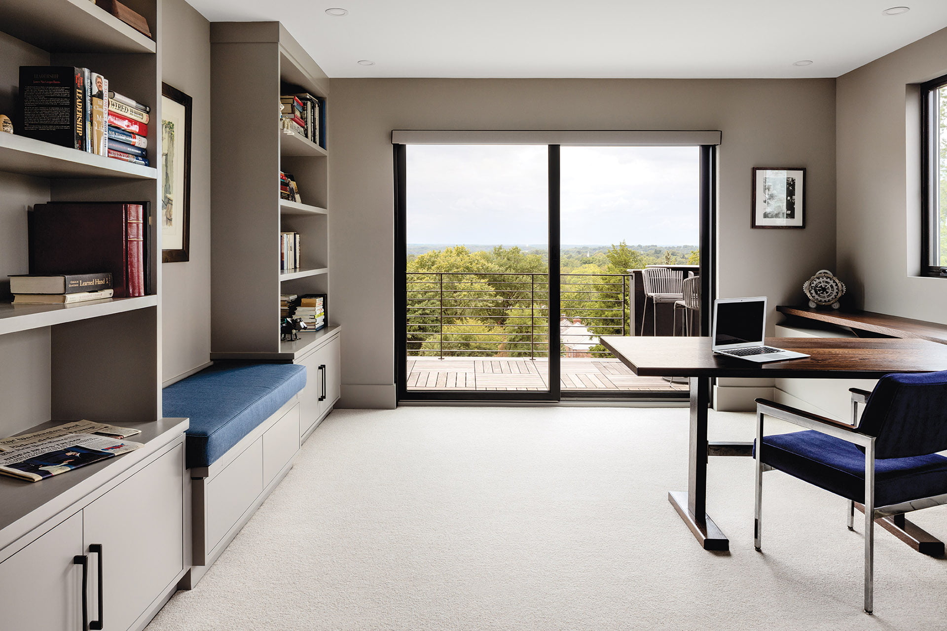 Following the renovation, the family finally moved back into the home in late 2020. Since a neighbor’s oak was toppled by a storm, their view expanded to take in acres of woodland, the winding Potomac and the Tysons skyline along with those gorgeous, ever-changing sunsets.