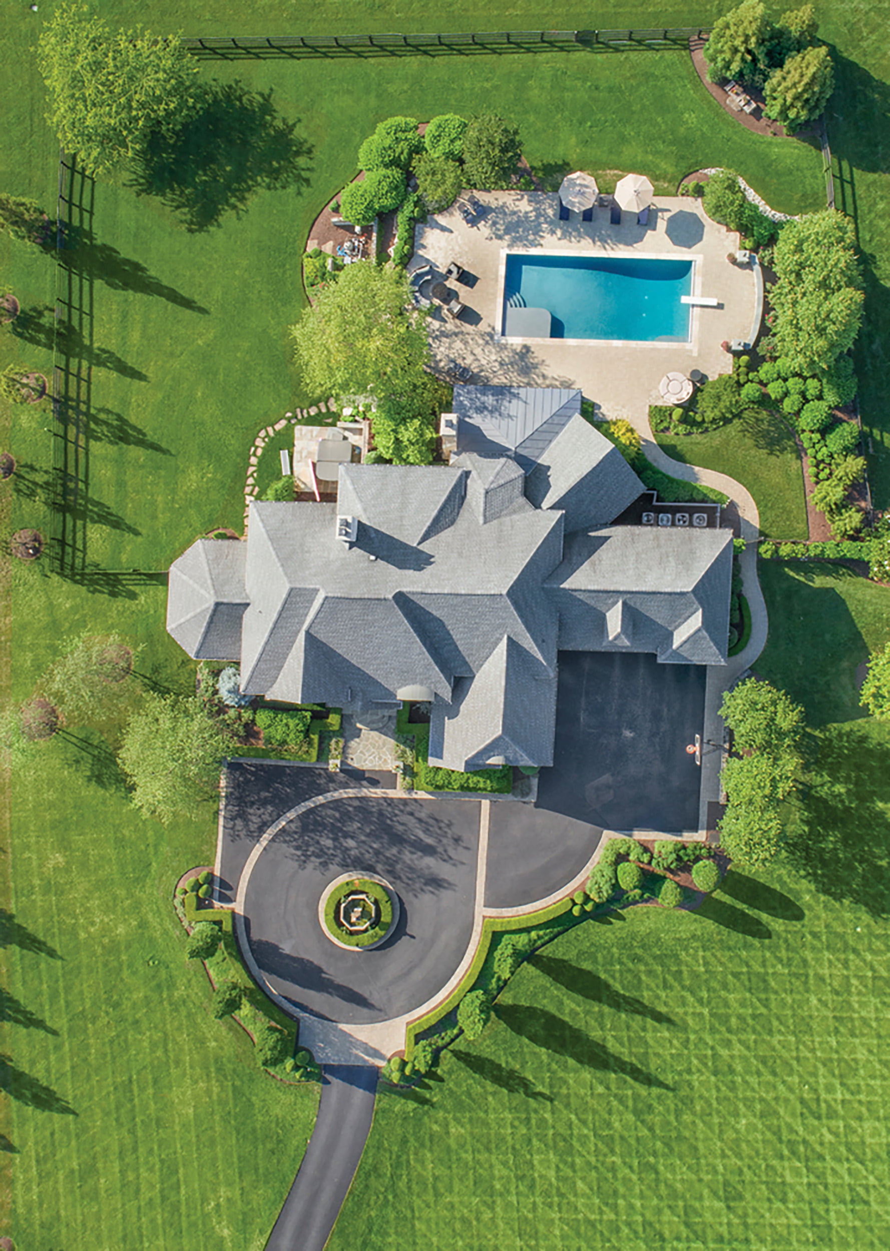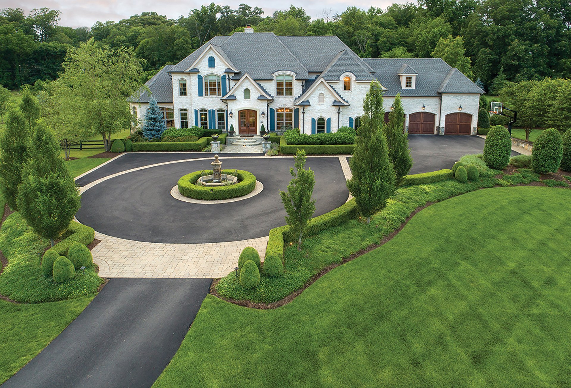 Homeowners with an estate situated on extensive acreage tasked Kane Landscapes with reimagining the approach to the house on a grand, yet intimate, scale. The list of requirements for the project included guest parking; a focal water feature for visual and sound interest; and a strong connection between the drive, the adjacent five-car garage and the front door.