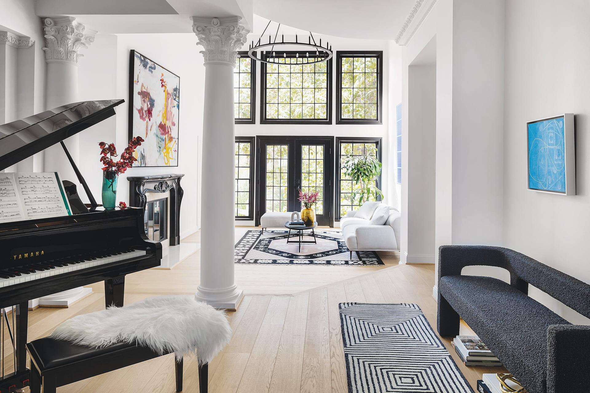 Noting that her clients specified “a modern-yet-warm, clean California” vibe, Beitler opted for natural oak flooring, black-painted window frames and crisp white walls as a fresh backdrop for chic furniture and lighting and bold contemporary art sourced at Merritt Gallery. Says the designer, “Pops of color impart personality, bright charm and fabulous focal points.”