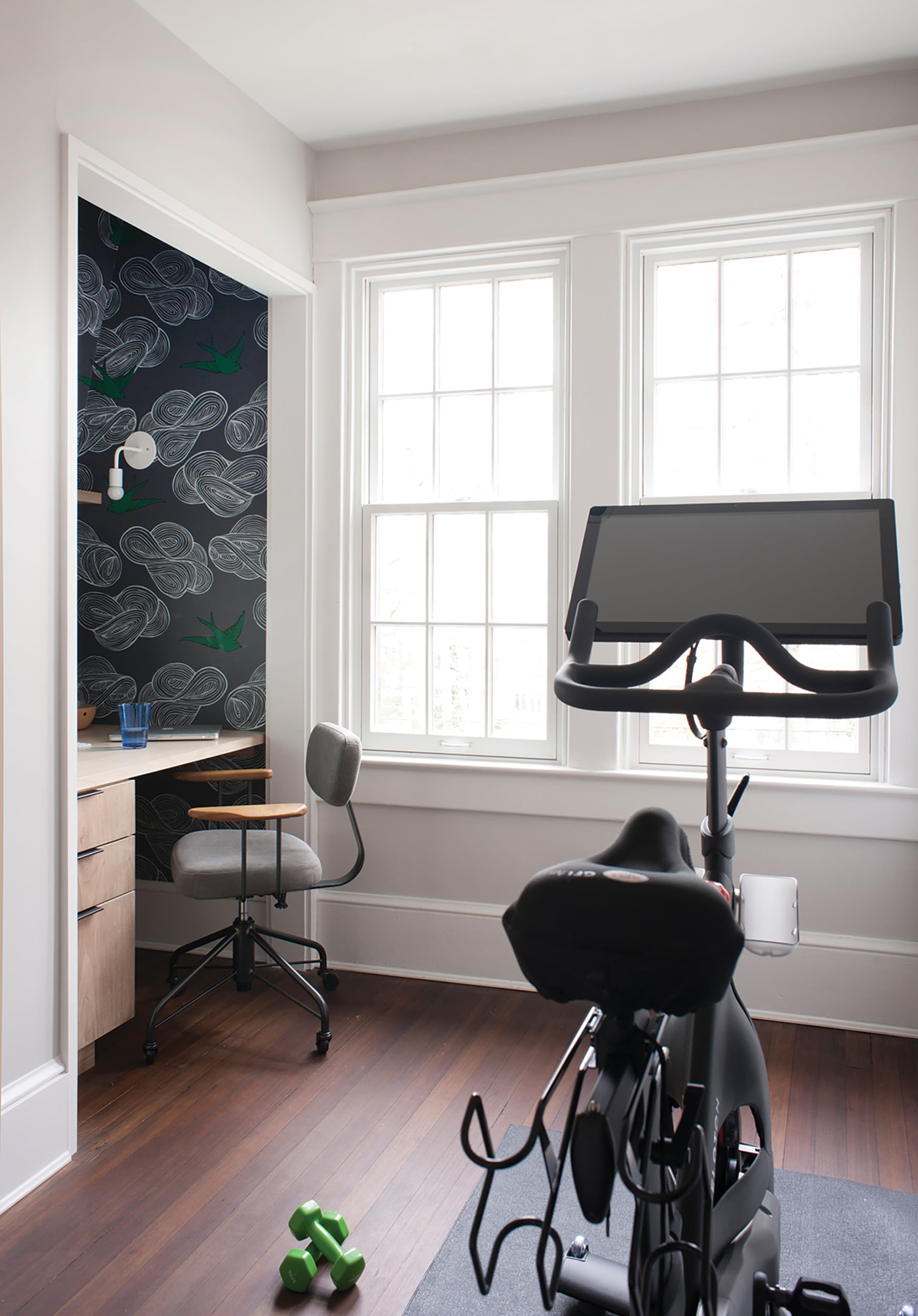 In 2017, the couple called architect VW Fowlkes, a schoolmate of Michael’s, and his partner and wife, Catherine, for help. Catherine proposed reducing the bedroom dimensions to expand the bathroom with a walk-in shower and tub enclosure and enlarge the closets. The renovation added a pocket office in an adjacent exercise room. “We made everything just a little more proportional,” Catherine Fowlkes says.