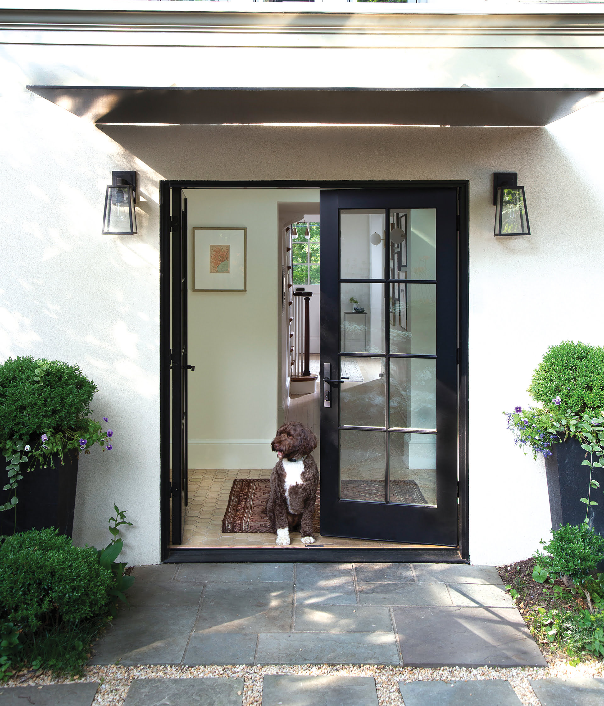 Today, new Pella double doors under a slim sheet of steel dress up the primary entrance. Photo: Helen Norman