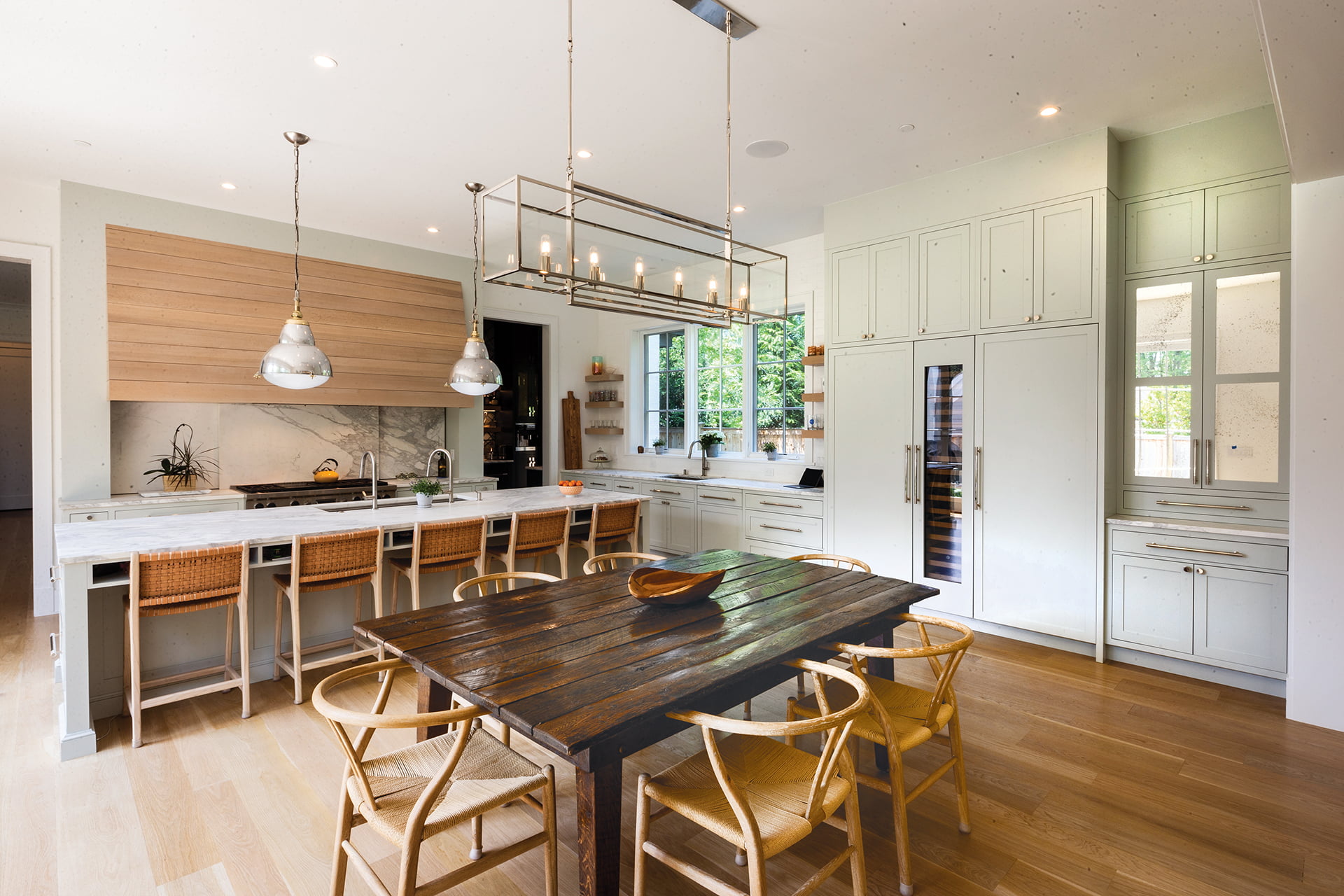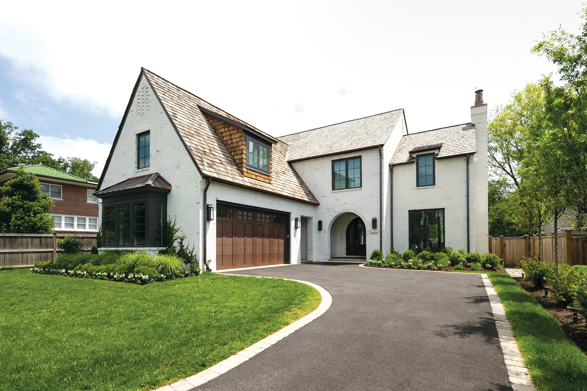 Clients with a narrow, 365-foot-deep lot approached Sandy Spring Builders about constructing a custom home on site. Working with GTM Architects, they devised a plan for a 10,000-square-foot “telescoping” house that would make the most of the challenging parcel. The completed, four-bedroom abode exudes a timeless presence with lime ash brick, cedar shakes and standing-seam copper roof details. “The exterior provides the sense that the home has always been there,” notes Sandy Springs’ Mike McNeel. An arched entry foyer leads to the kitchen, dining area, family room and glass-walled sunroom. And an exercise room with heaters for hot yoga overlooks the pool and rear yard. A lower-level rec room with a wine cellar, golf simulator and home theater round out the amenities.