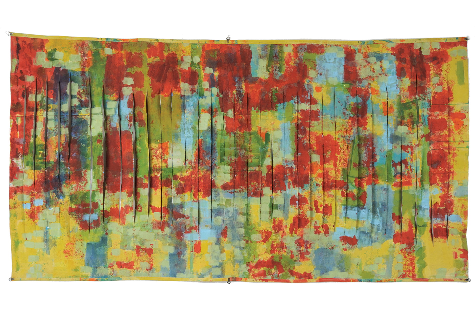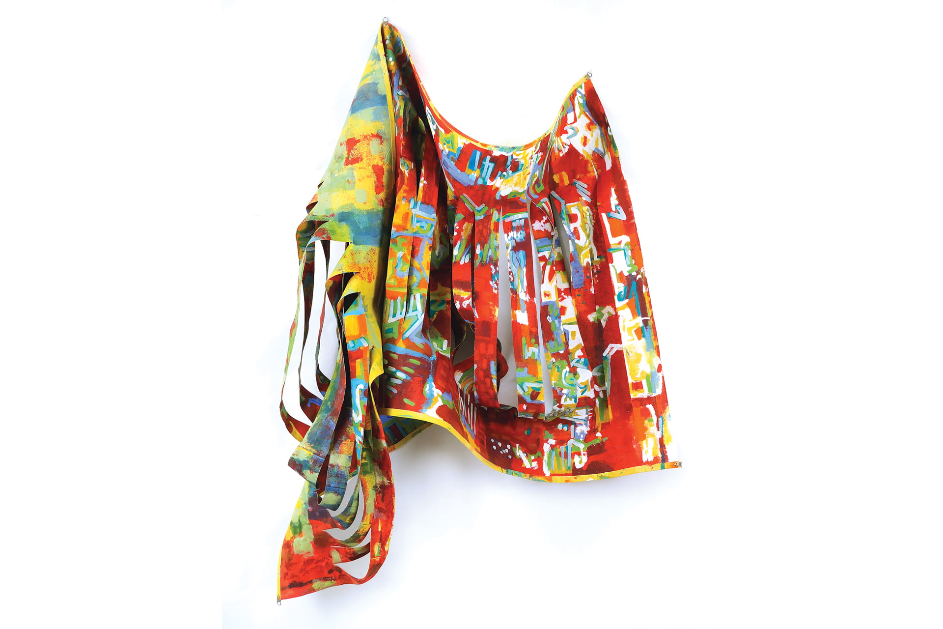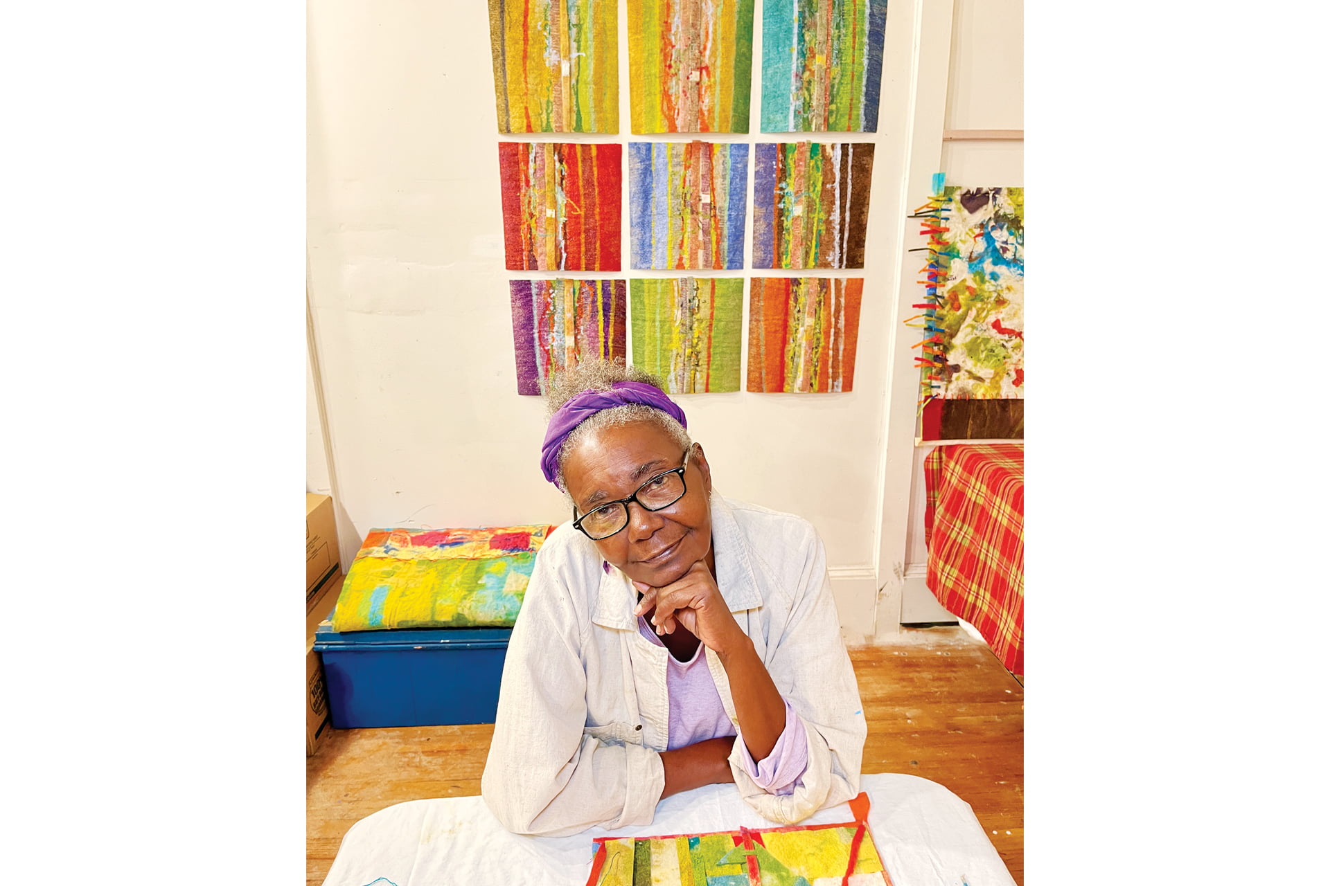 Brilliant colors blaze a trail across Sheila Crider’s dimensional art. In her mixed-media work, flat canvases may convert to billowing shapes. Textures glide from gridded burlap to subtle Japanese-paper relief. Parts may be woven or laced together. And while materials are often gathered from what’s at hand, meaning isn’t left to chance. Perhaps that’s because Crider started out as a poet.