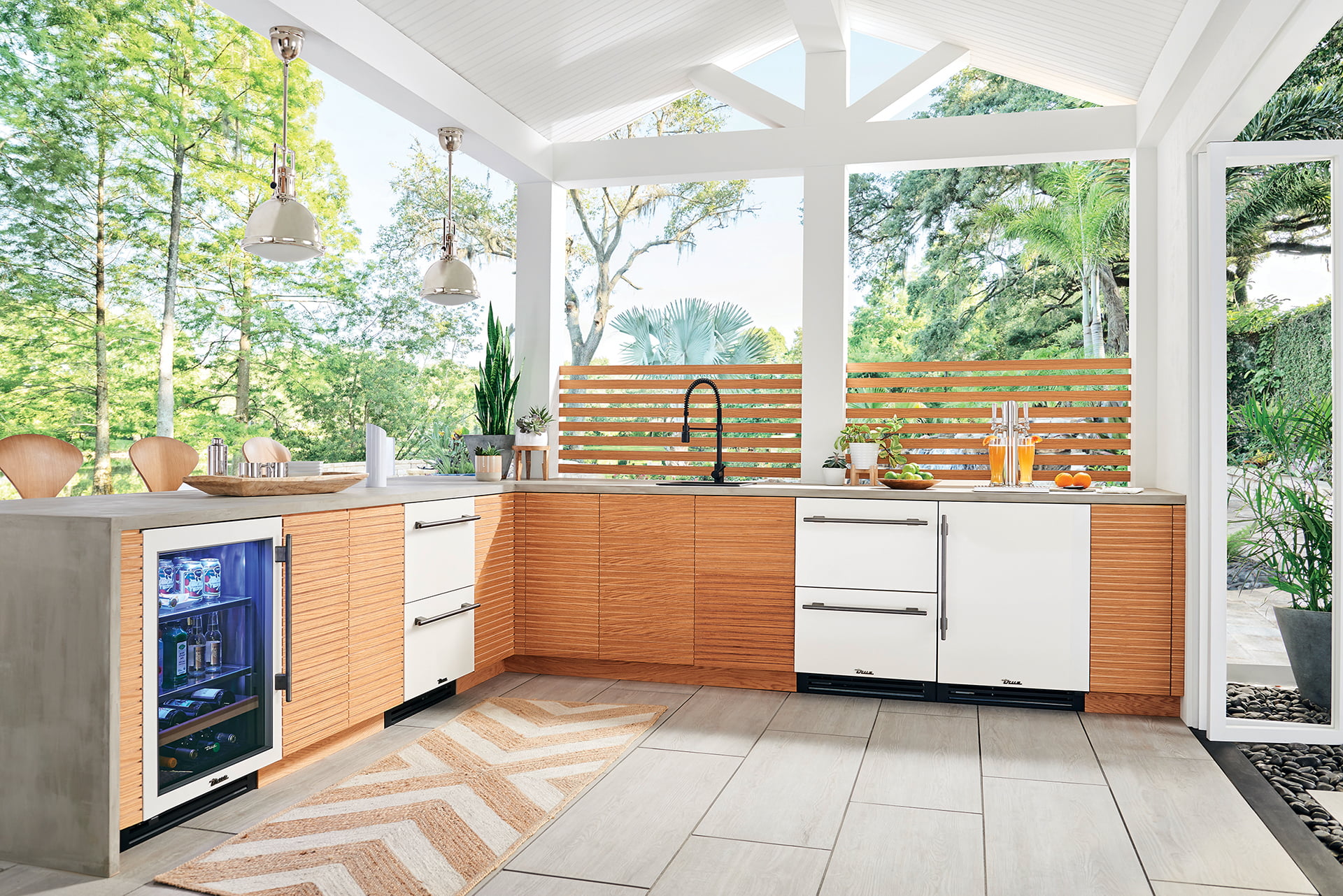 The 24-inch refrigerators and freezers in True Residential’s 300 Series come as undercounter and drawer units. Multiple hardware options and a host of finishes are available; pictured below in matte white with pewter hardware. Find through Ferguson. true-residential.com; build.com