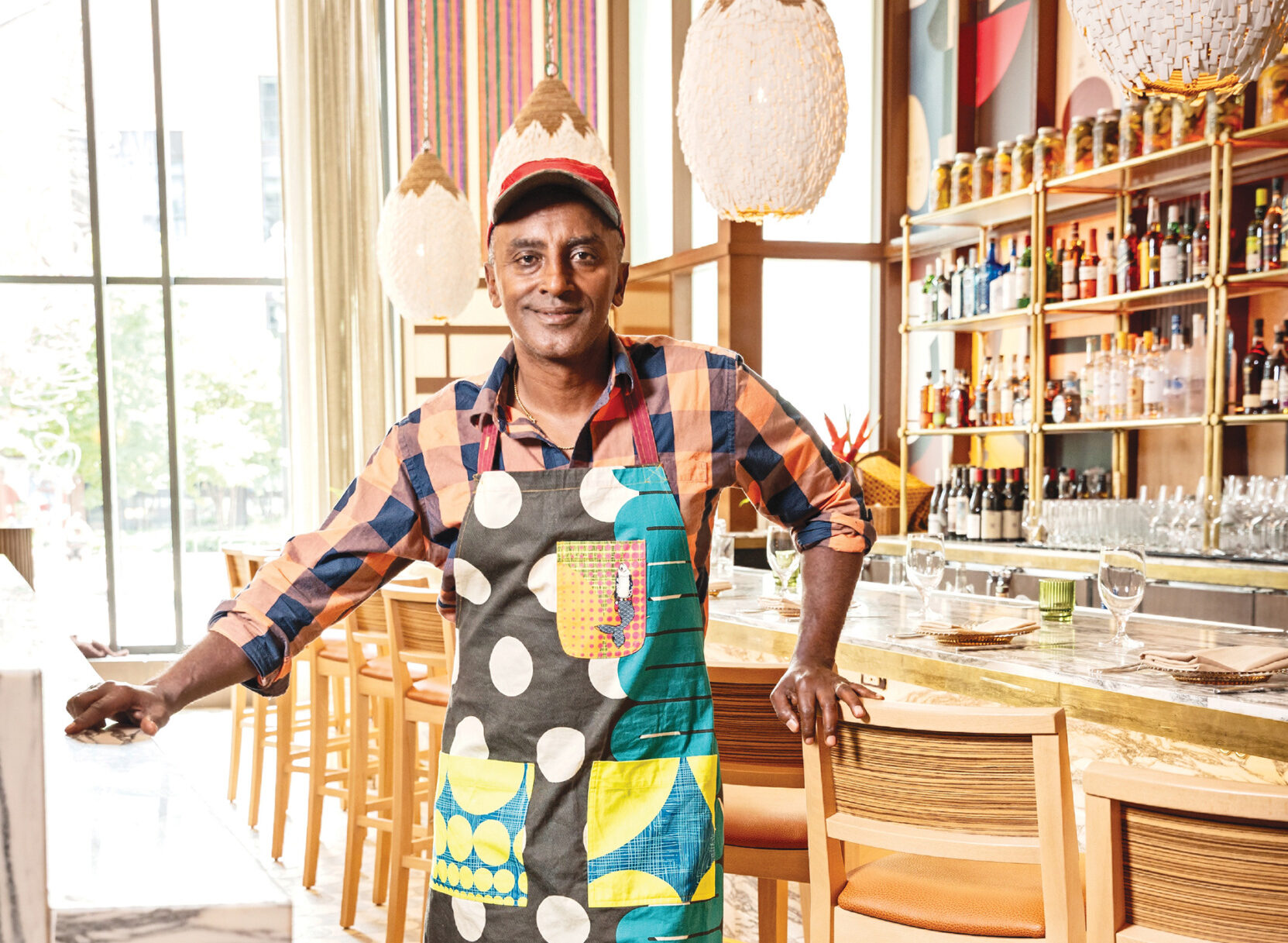 Chef Marcus Samuelsson poses by the bar in his new NOMA restaurant.