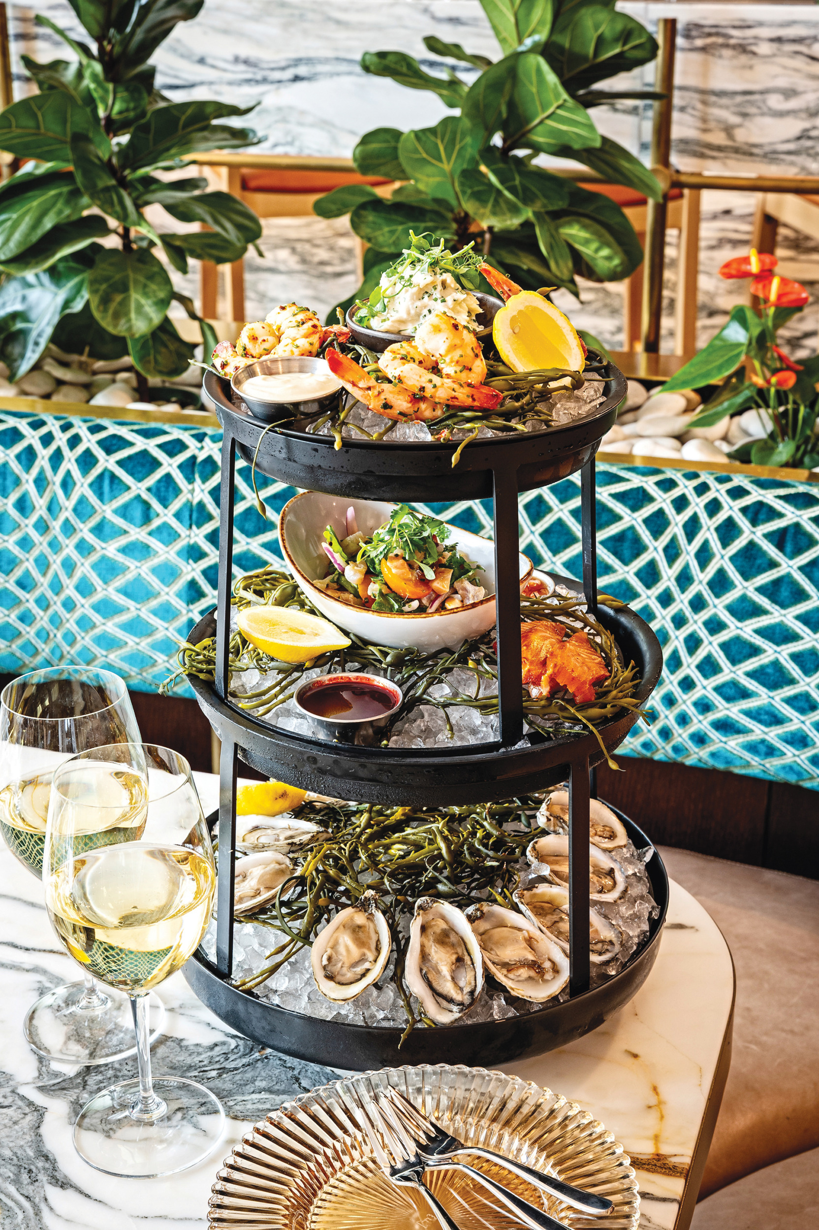 A melting pot of modern American cooking and Black culinary traditions, Marcus DC is the latest from chef/restaurateur Marcus Samuelsson. Global dishes reflect his journey from Ethiopia to Sweden as well as a lifetime of curiosity and travel. Cross-cultural creations include mambo-sauced roast chicken and cured salmon with goldenberry broth, fennel and a teff crisp. Executive chef Anthony Jones, a Maryland-native, brings local flavor to the mix with a dish inspired by his favorite Calvert County crab shack. Interiors by Kamille Glenn of dsgnrswrksp employ tactile materials, bold patterns and vibrant hues. An abstract collage by Baltimore-born artist Derrick Adams commands the dining room. 222 M Street, NE; 202-280-2288. marcusdc.com