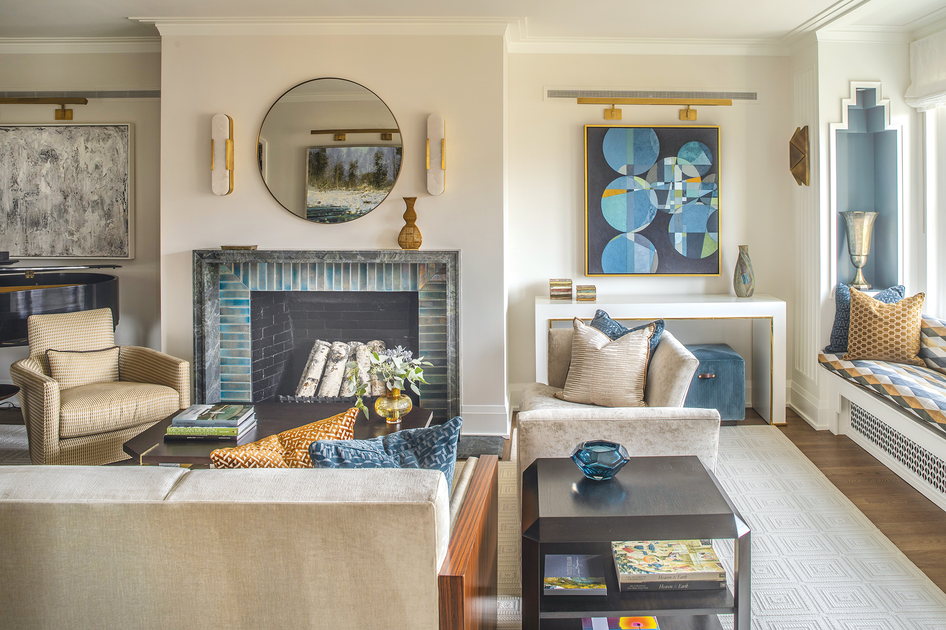Hired to reimagine a dated DC condo in an historic Kalorama building, designer Skip Sroka took inspiration from the famed Saarinen House at Cranbrook Academy of Art. After stripping the home down to bare bones, he reconfigured and revived the interiors with elegant yet cozy style. Cerused, rift-cut white oak flooring, walnut accents and lacquer create a sophisticated backdrop for warm, contemporary furnishings and expertly curated, colorful works of art.