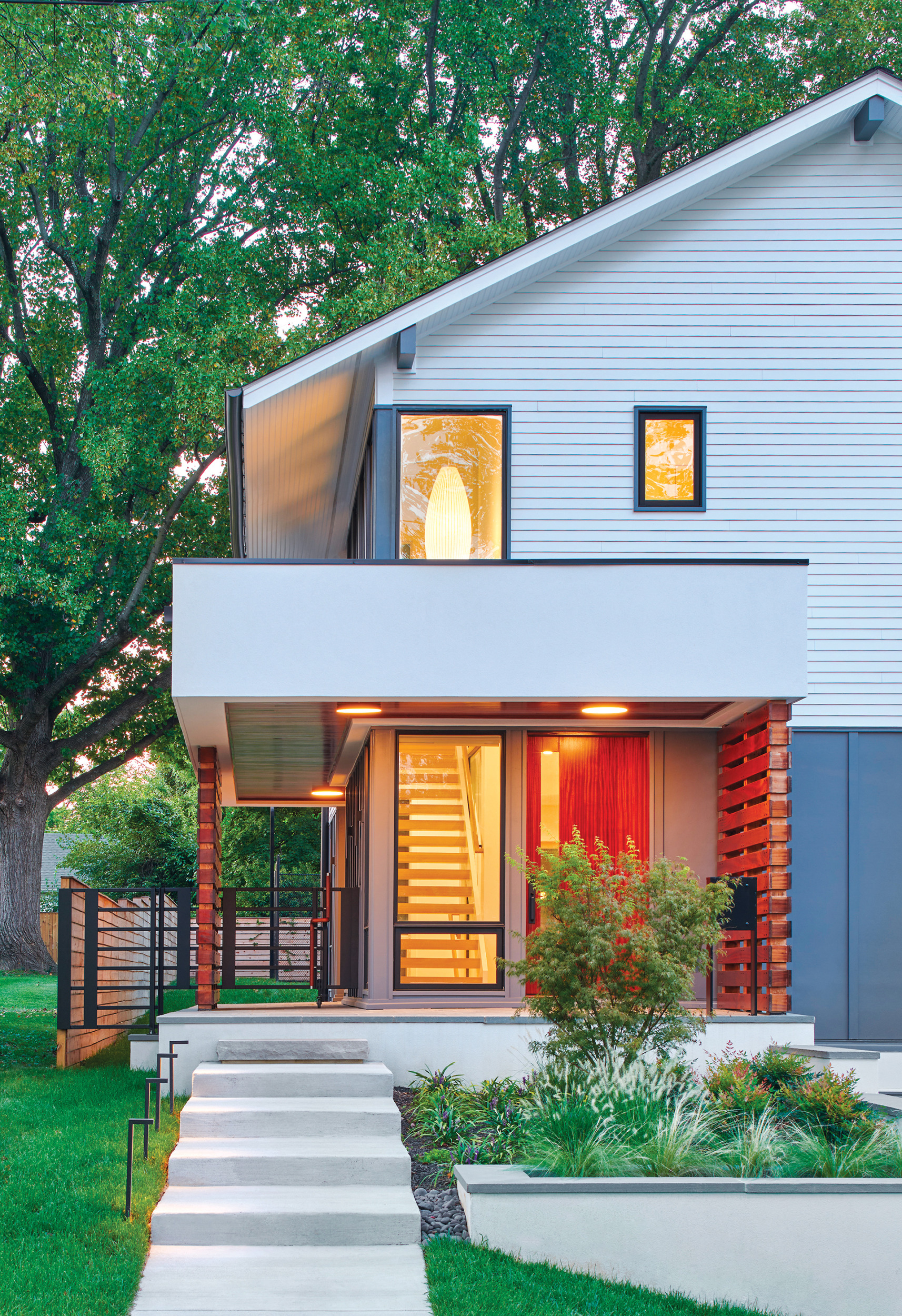 The owners of this Silver Spring home, a couple with three sons, envisioned a stylish sanctuary. Situated on a compact lot, the modest-scale dwelling built by Classic Homes of Maryland employs contemporary lines, which lend the structure a modern sensibility, while a mixed material palette complements the surrounding houses on the street.