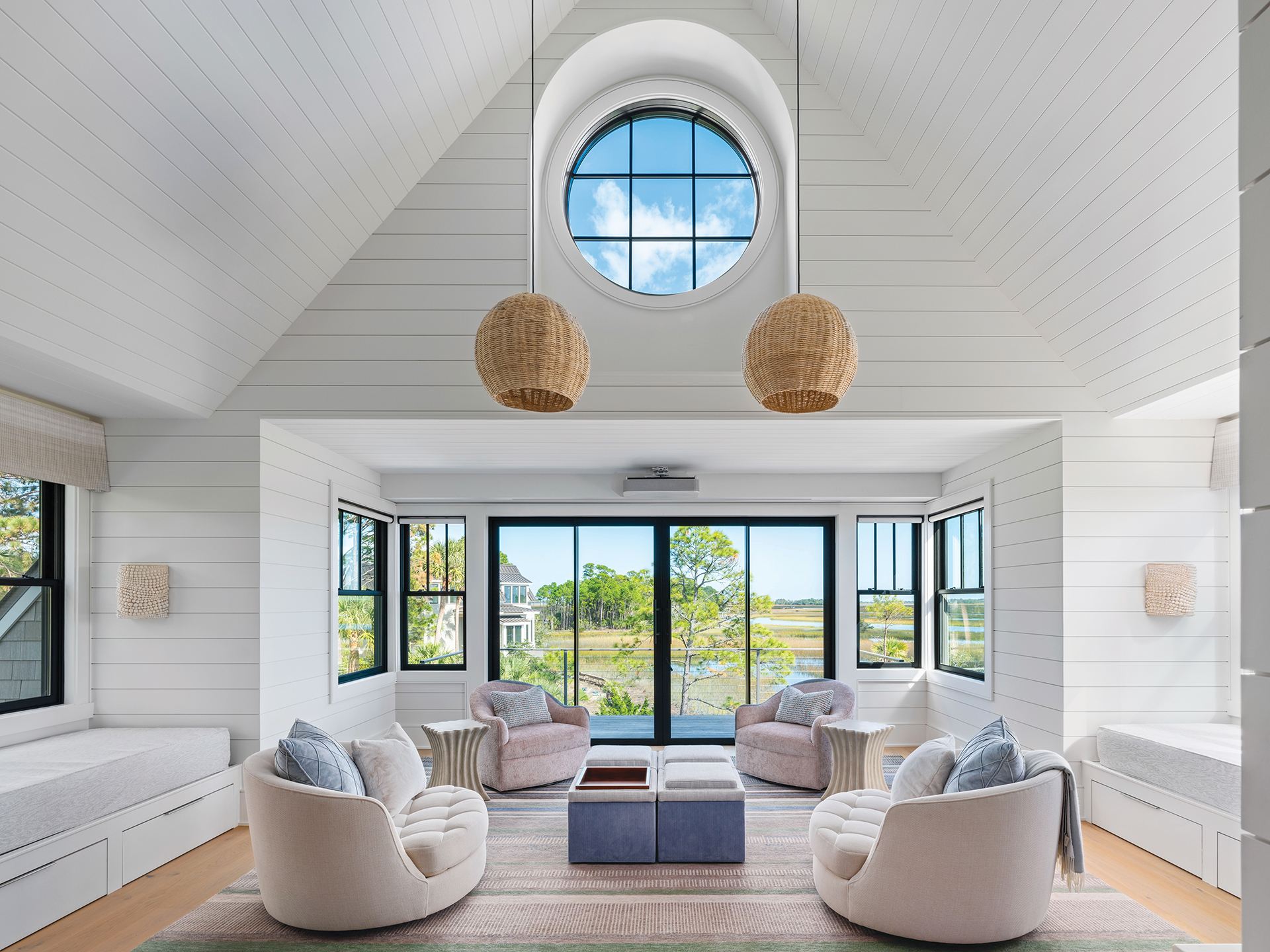 This new, custom 5,500-square-foot home on Kiawah Island, South Carolina, was designed as a retirement retreat for longtime clients who wanted a space that felt both relaxed and refined. Interior designer Tracy Morris delivered a sophisticated, yet livable abode without any of the coastal clichés. Expansive windows frame the natural beauty of the Lowcountry, while the furniture plan encourages movement between indoor and outdoor spaces. Performance fabrics and natural textures, such as wood, linen and stone, instill a sense of ease and timelessness.