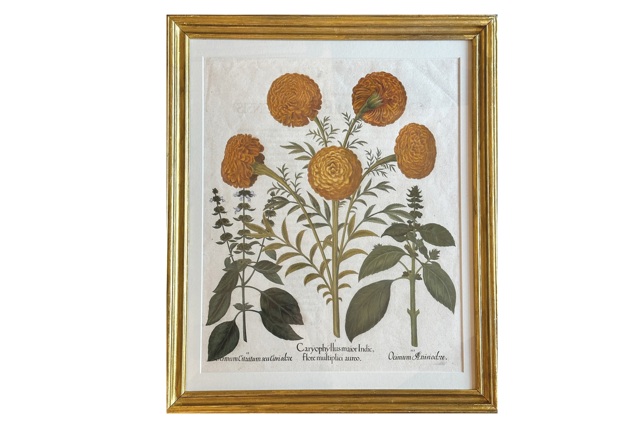 A 17th-century folio botanical engraving, available via Taylor Carlisle Galleries (taylorcarlislegalleries.com). The company has exhibited at the Mid-Atlantic Antique & Garden Festival.
