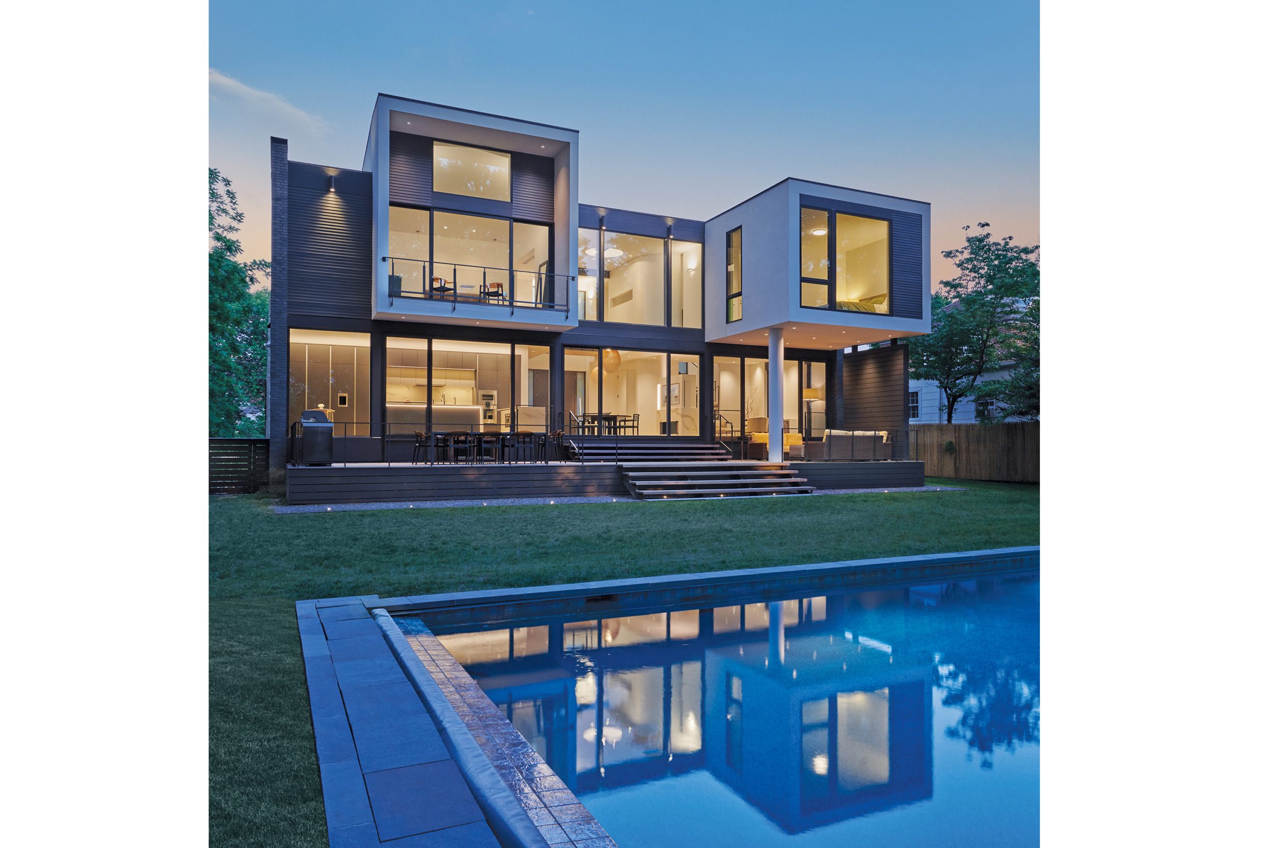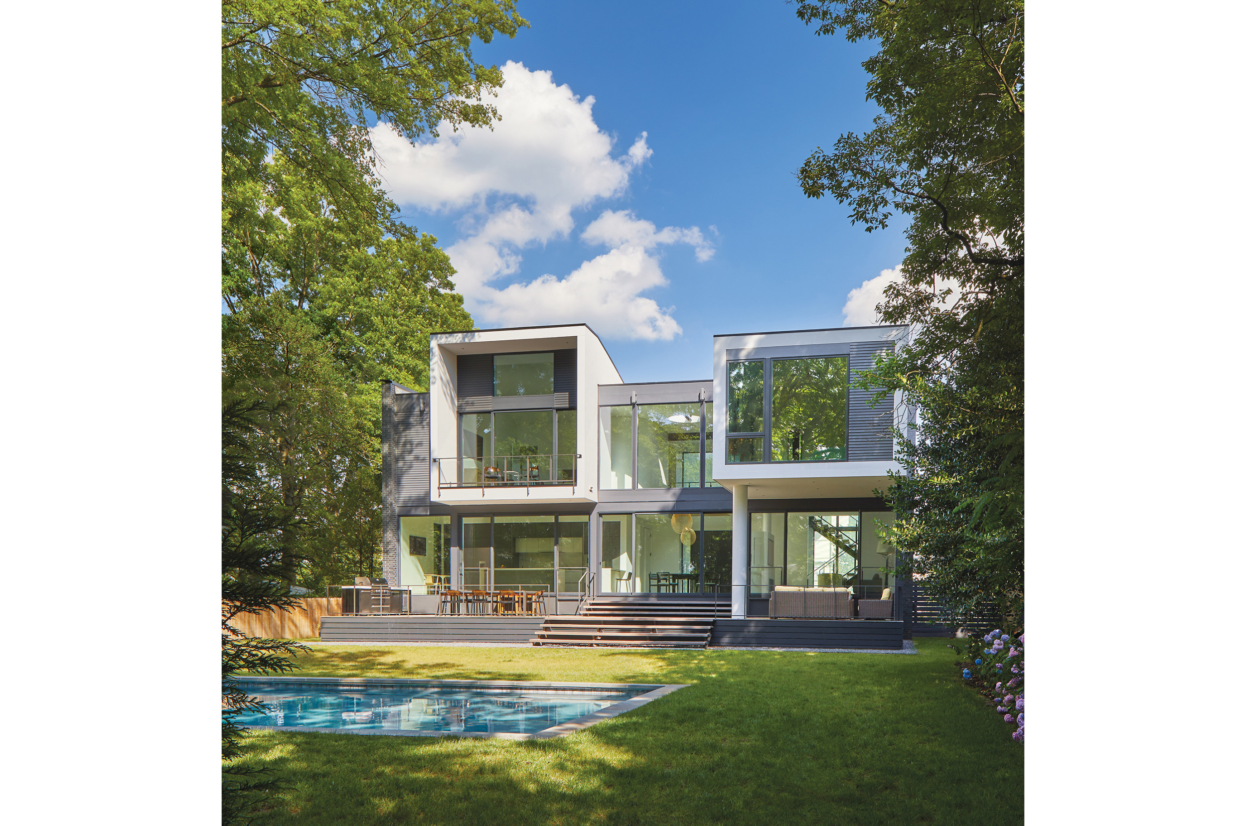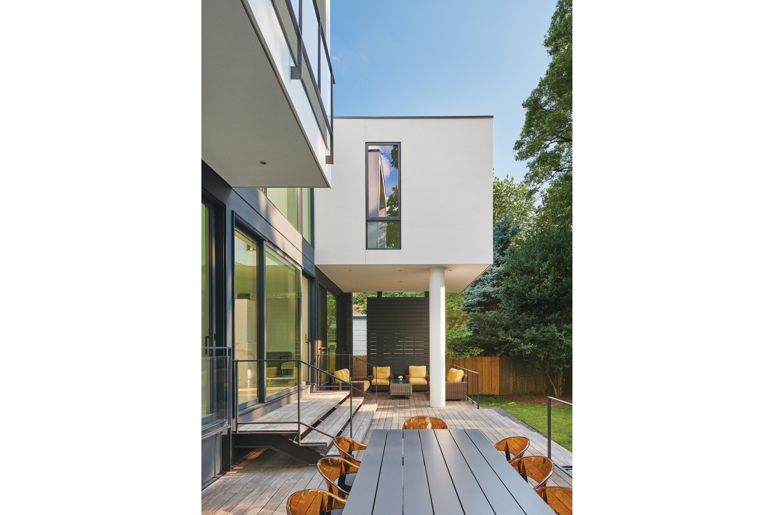 “We call it the Split House because everything supports the split, from front to back,” McInturff says. “The rear yard is like a private outdoor room, which allowed us to blow out the back.”
