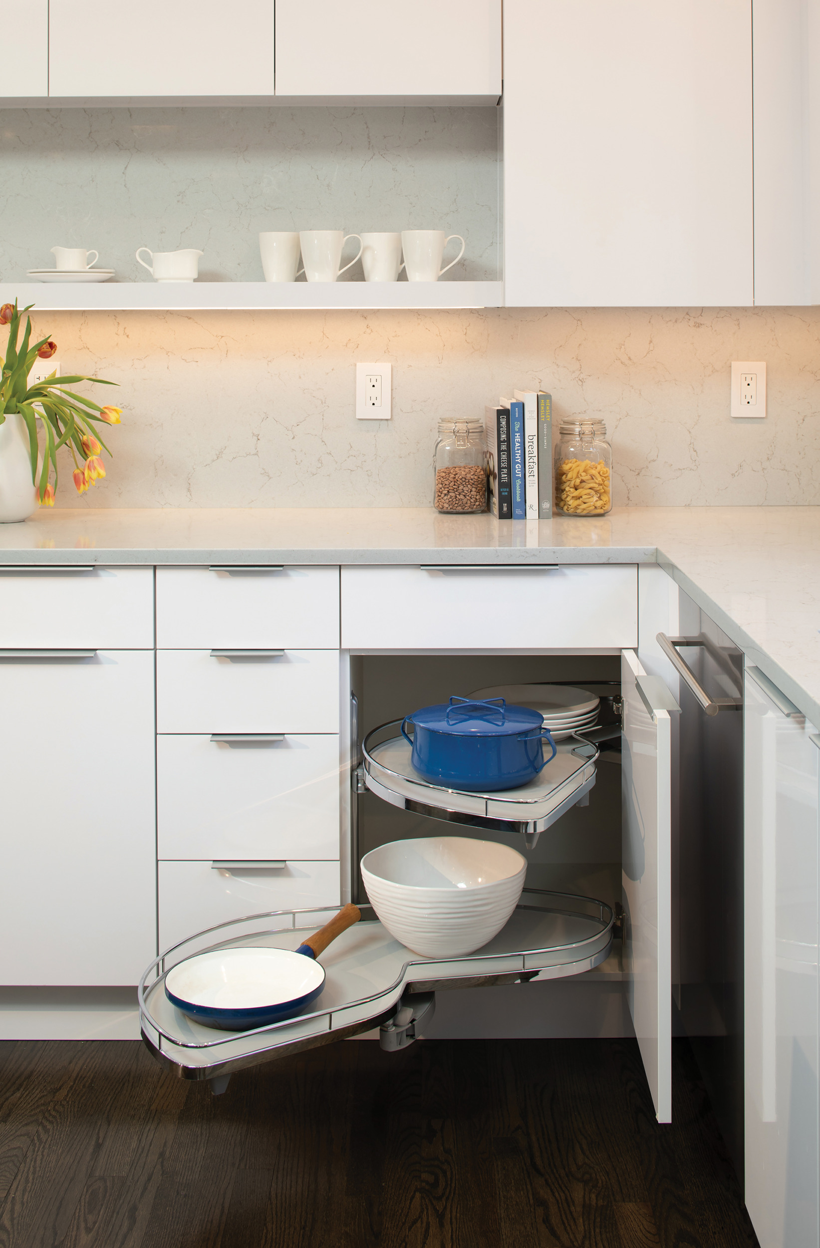 The homeowners of this Chevy Chase, Maryland, kitchen have contrasting style preferencess--she likes contemporary and he likes traditional. So Gilday Renovations came up with a transitional design that brings both their sensibilities into balance.