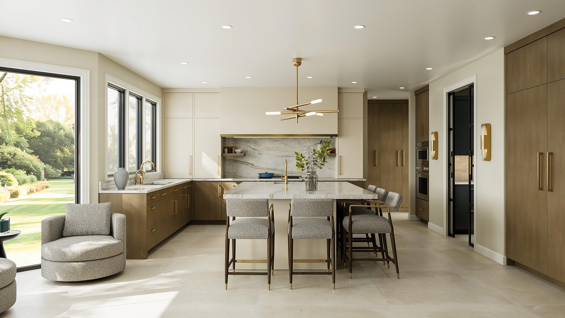 Aesthetically, the material palette telegraphs timelessness and restraint, with wood and stone finishes and stainless-steel appliances, as the designers wanted the kitchen to feel updated in a way that has longevity and won’t quickly date itself. Such great selections and good flow elevate the space. The clients needed flexibility for entertaining and day-to-day living and the design team fulfilled their request with an elegant and functional plan.