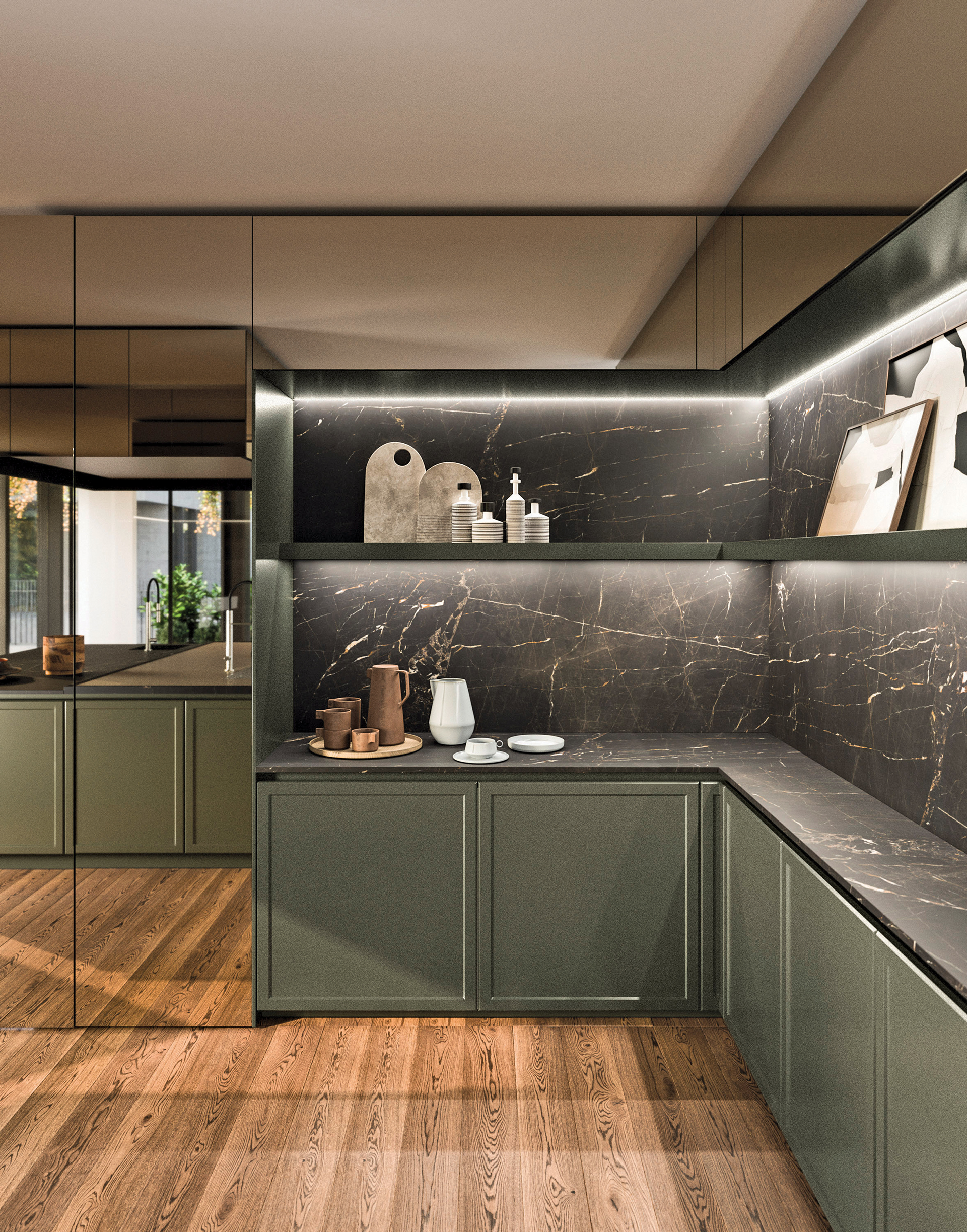 Second that Emotion “Today’s kitchens prioritize emotional connection and aesthetic calm as much as function. Hidden appliances, soft lighting and intuitive organization systems allow the kitchen to feel like a sculpted piece of furniture.” –Maya Nair, Häcker Greenwich l Häcker DC