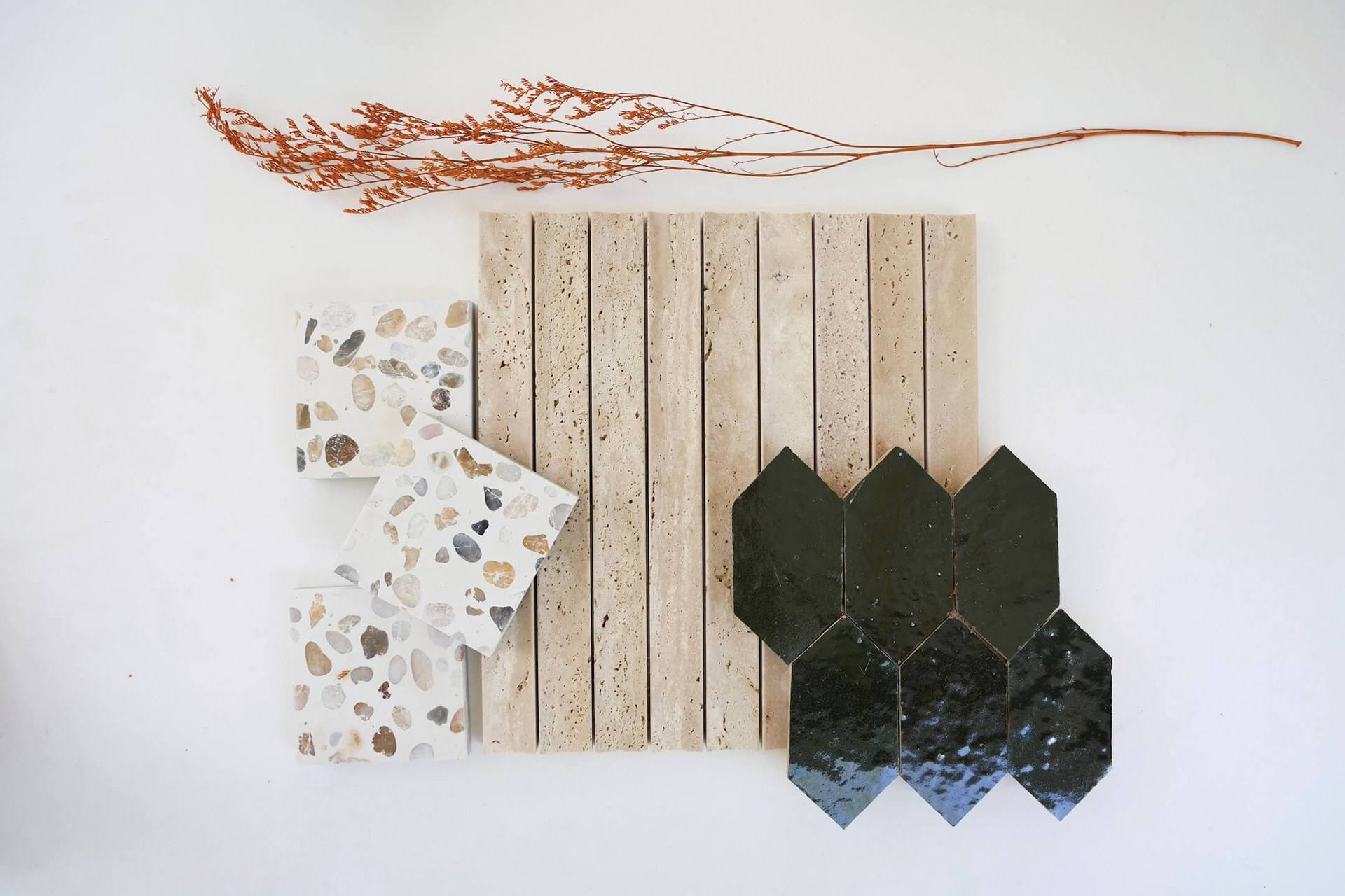 Raw Beauty “One trend is moving toward a refined balance of polish and grit. It embraces handmade elements that carry the beauty of variation—organic textures, imperfect edges and materials that age gracefully,” says Shanta Peru of Architessa. Canal tile blends marble, travertine and limestone.