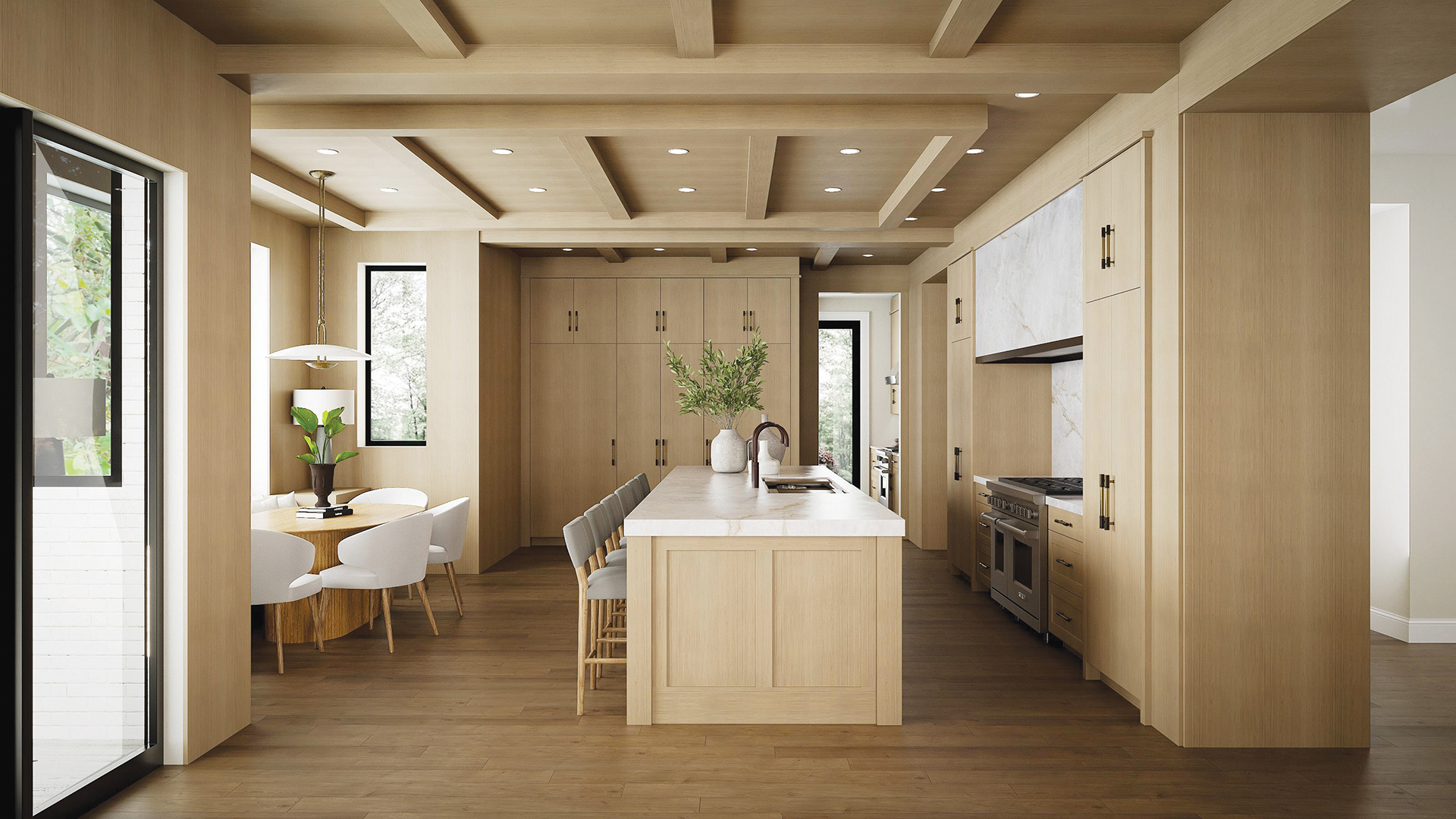 Organic Chemistry “Kitchen materials continue to evolve into a more organic palette, and we are integrating these elements into the family room and other spaces throughout the house,” says J. Paul Lobkovich of Lobkovich Kitchen Designs. In a McLean kitchen designed by his colleague Emily Newell, rift-cut white oak paneling wraps the cabinetry, ceilings and walls, bringing natural warmth and visual continuity to the space.