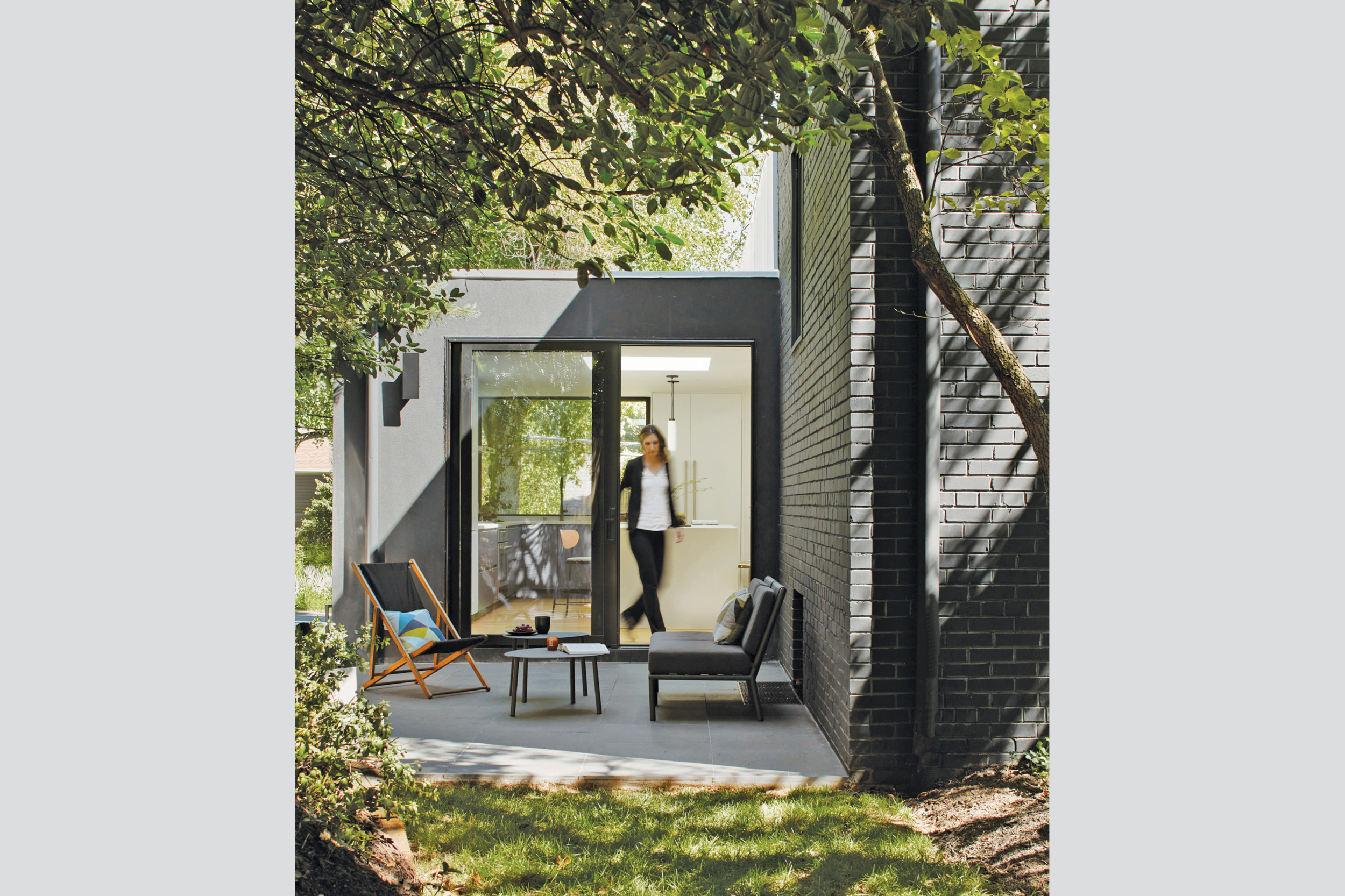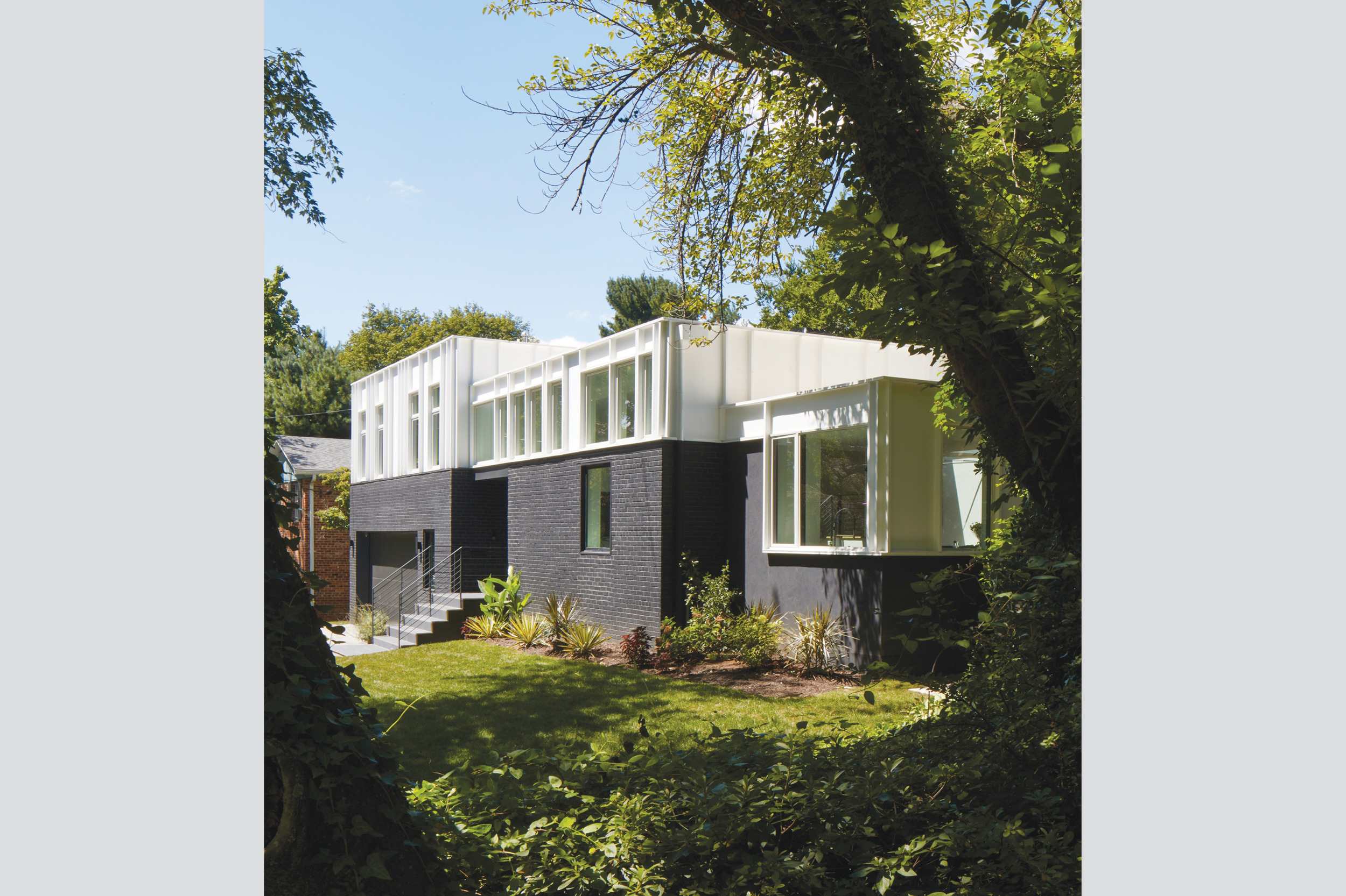 While reimagining a run-of-the-mill Chevy Chase abode in bright, modern style, architect Colleen Healey designed a sleek kitchen addition with a new patio and much-needed access to the wooded backyard.