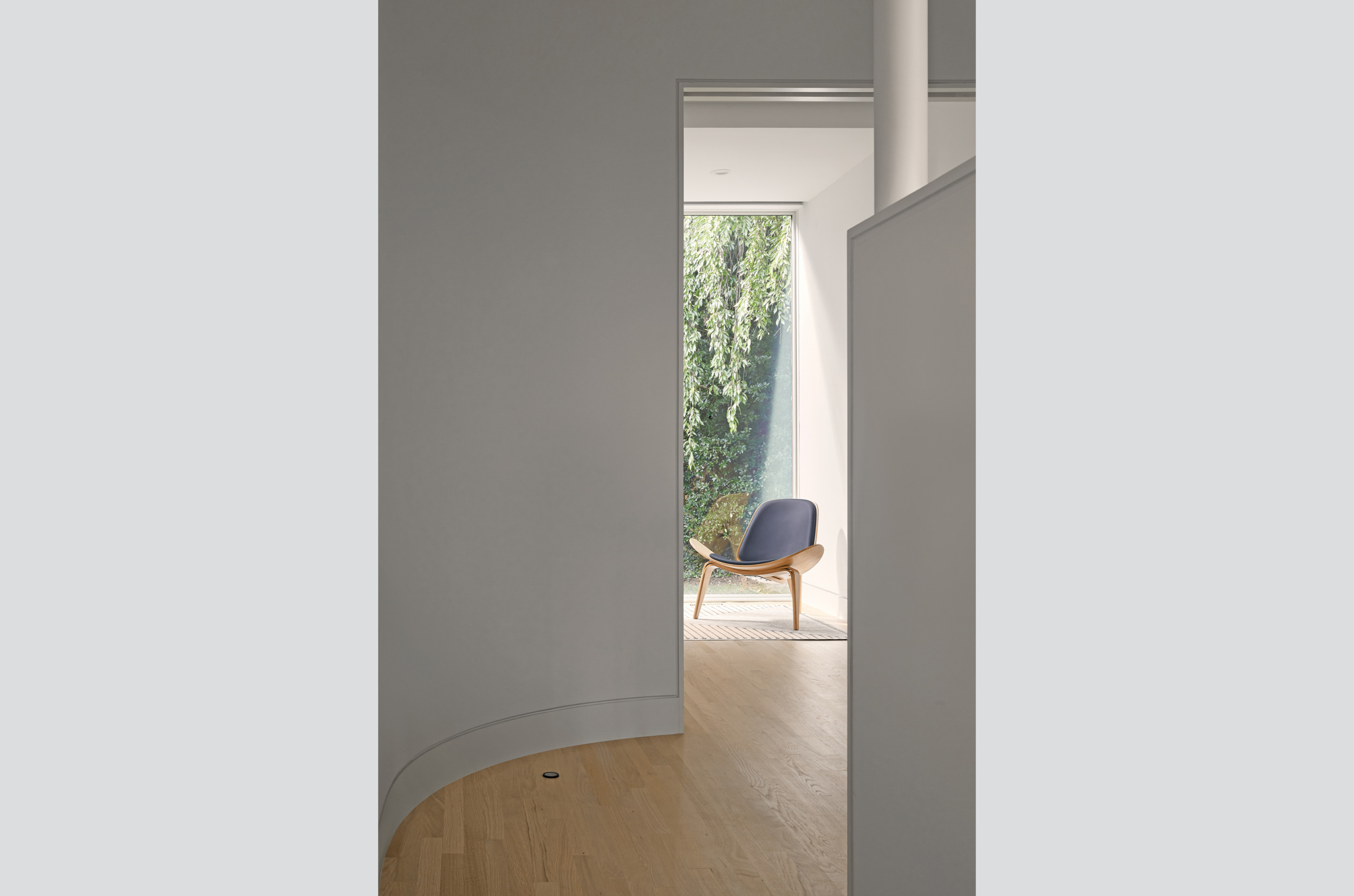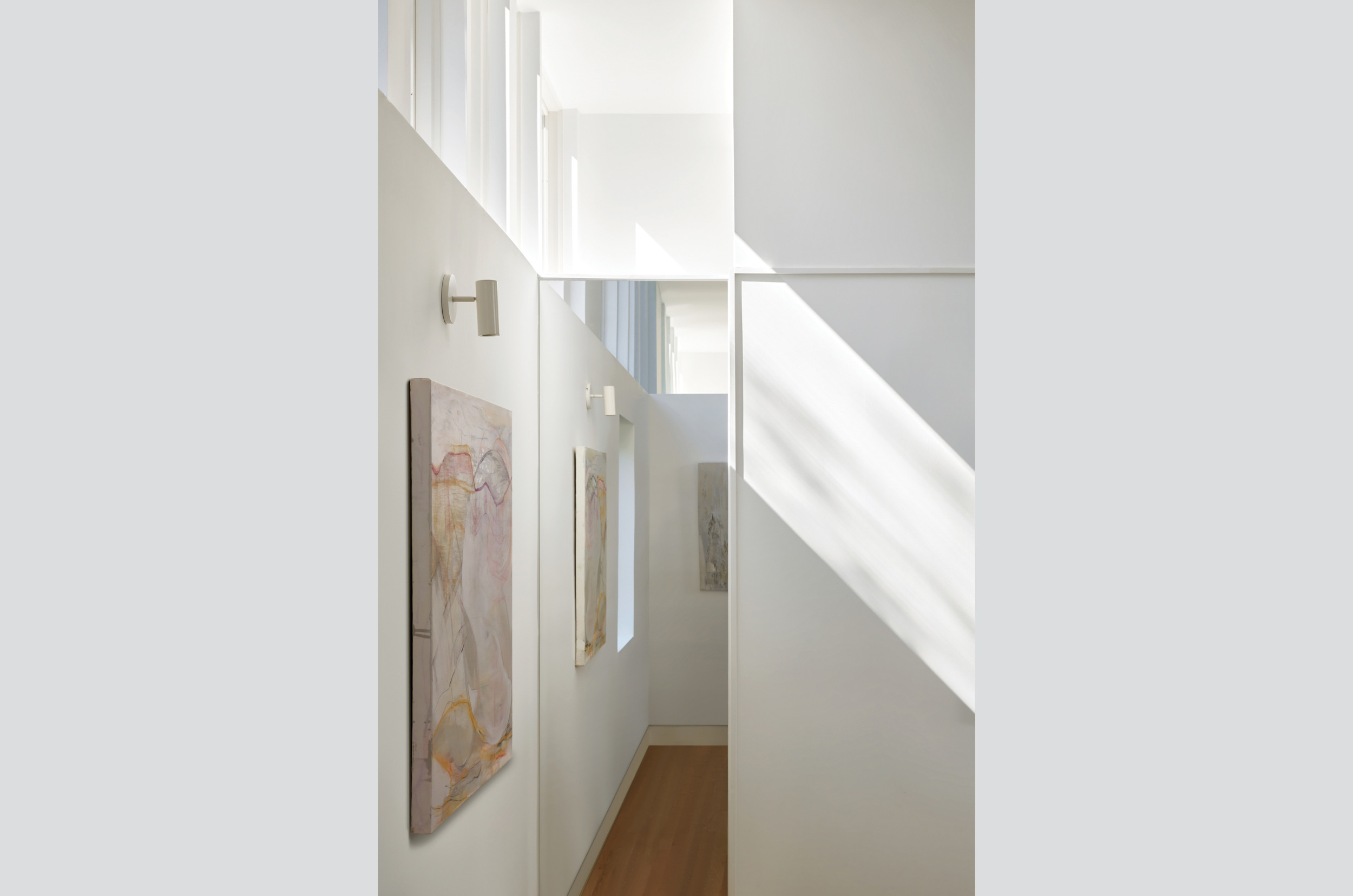 In the hallways, a curved wall “adds an element of the unexpected,” says Healey. “I like surprises as you move through a space.”