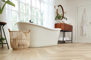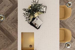 ![]() | LUXE VINYL Karndean’s Korlok Select line of luxury vinyl tile features Texas White Ash, a light neutral with a straight grain that conveys a contemporary aesthetic. Pictured in six-by-24-inch herringbone planks; an acoustic backing reduces noise transfer to rooms below. karndean.com |