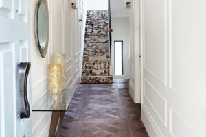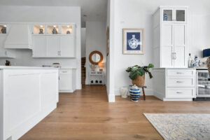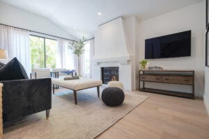 After purchasing a newly constructed abode in Arlington, a young couple tapped designer Susan Sutter to carry out their vision for the interiors. “They wanted a traditional yet updated home with a cohesive look,” notes Sutter. “We focused on high-quality materials and classic lines with a tranquil, unifying color scheme.” Integrating motorized window treatments, appliances and entry-lock systems with Google Home was also a priority.