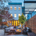 Despite its urban location in the heart of Georgetown, a new, modern row house revolves around the path of the sun. In their conception of the four-story abode, architects Travis Price and Kelly Davies Grace embraced passive solar design. Perforated stainless-steel fins screen the home’s façade, preserving views while shading interiors from solar gain. The dramatic changes in light, “both daily and seasonally, bring a healthy simplicity of country life right into the middle of the city,” remarks Price.