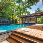 | The backyard sloped away from the house and needed a drainage system to efficiently channel water. | The backyard has been shored up, creating a flat area between the pool and the house and a gentle slope away from the pool. Hidden drains were installed. |