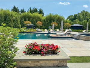 Easy entertaining was the order of the day for a McLean couple who tapped Plusen Landscape Architects and Planted Earth Landscaping to transform their mundane, one-acre property. “We expanded the usable space with durable, year-round features for an active family,” says Chris Vedrani of Planted Earth, who oversaw installation and maintenance.