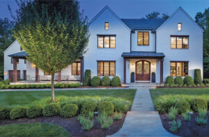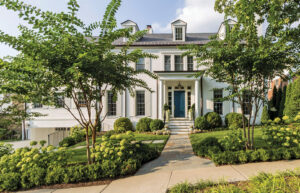 Wheat’s also beautified the front yard. “The clients wanted the house to fit into the neighborhood as if it had always been there,” notes Gryskevich. “We used mature plant material such as hydrangea and boxwood to get that effect.” A line of crape myrtles “brings down the scale of the house,” he adds. And a bluestone path leads to the front door.